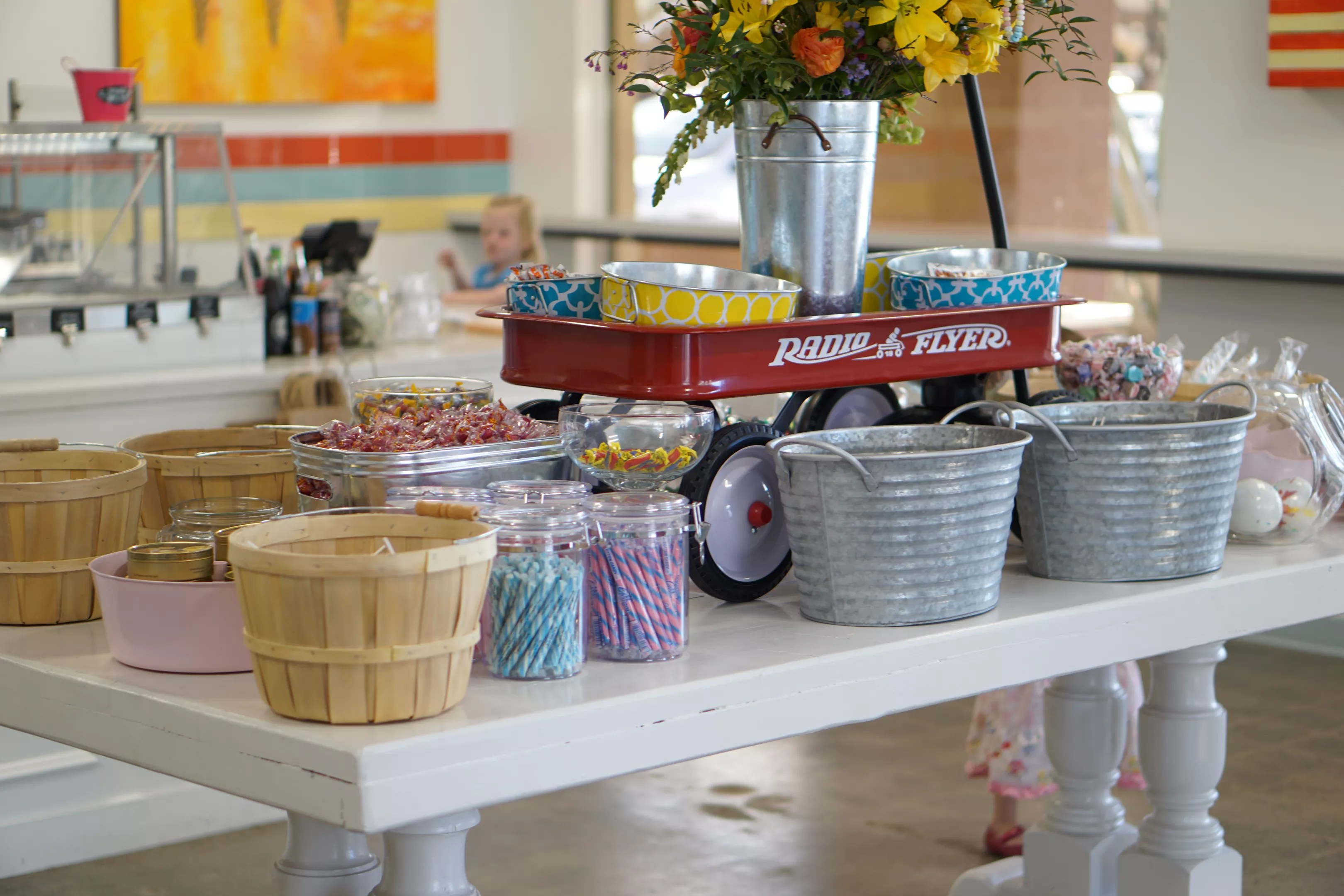 Buckets, baskets, and Radio Flyers of candy at Sweet Provisions in Scottsdale.