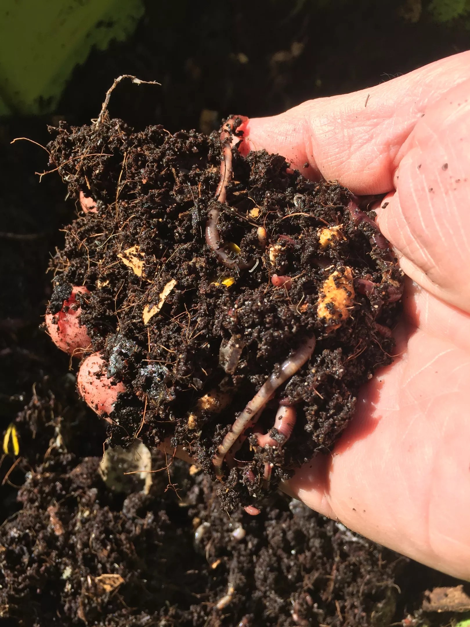 Black gold, as some farmers cutely call compost, is composed of three elements – brown, green, and water. Brown is yard stuff like dead leaves, branches, and twigs. Green is things like grass clippings, but also fruit and vegetable scraps. Water is water.