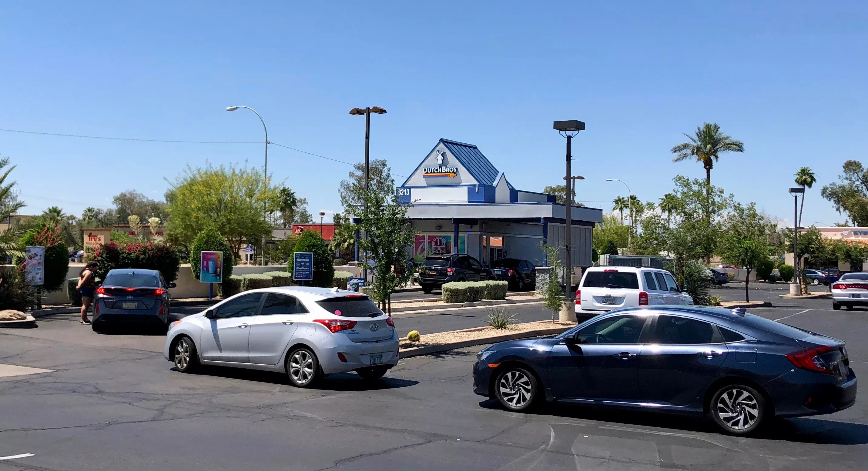 “Some types of business have more folks visiting them,” Huhn says. We’re talking about Dutch Bros., Starbucks, Chick-fil-A. “We don’t want to take customers away from those businesses. That’s why we ask folks if they’re going to go to those types of places, to park their cars and go in.”