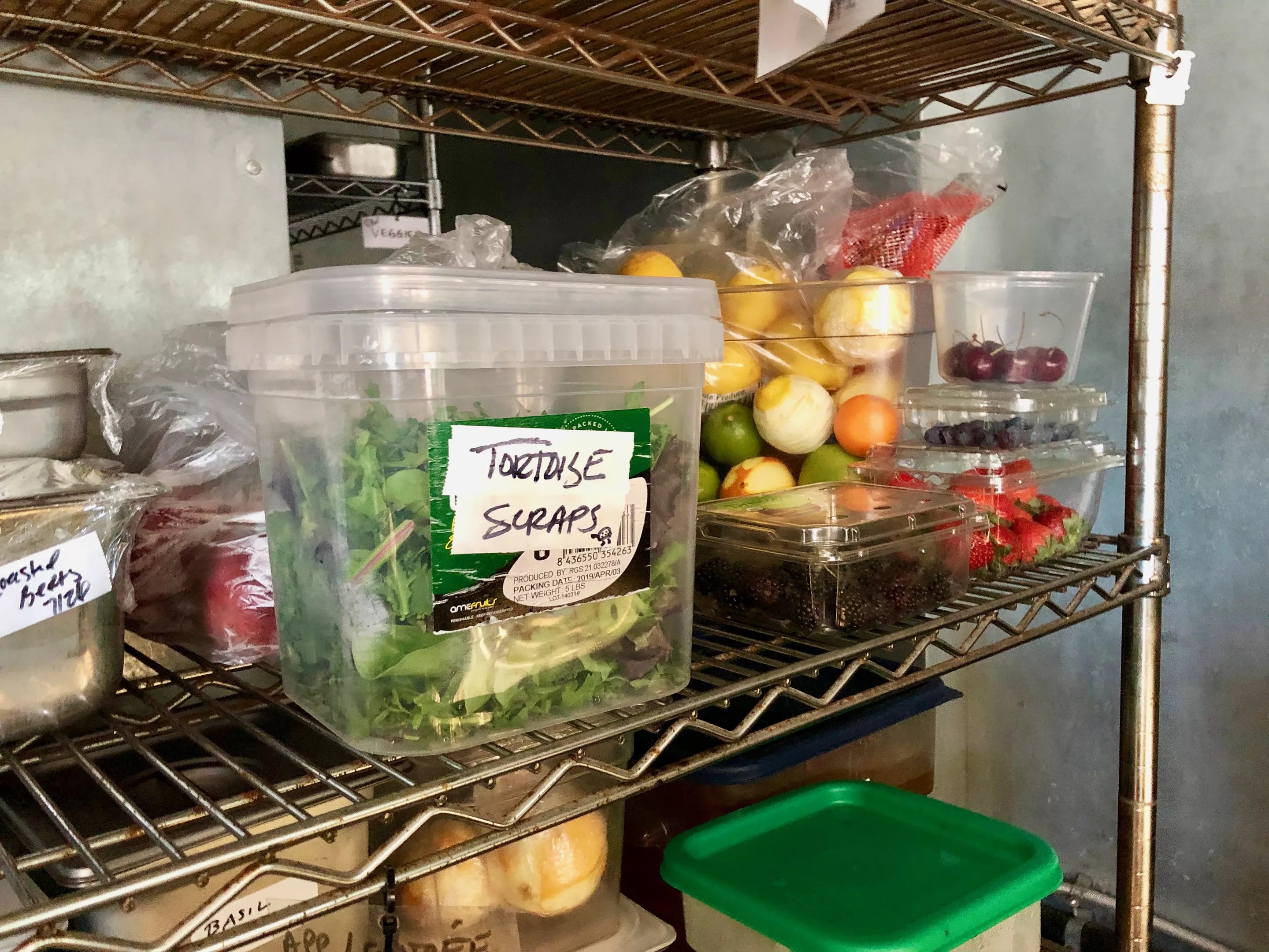 The designated tortoise scraps bin at The Farish House in downtown Phoenix.