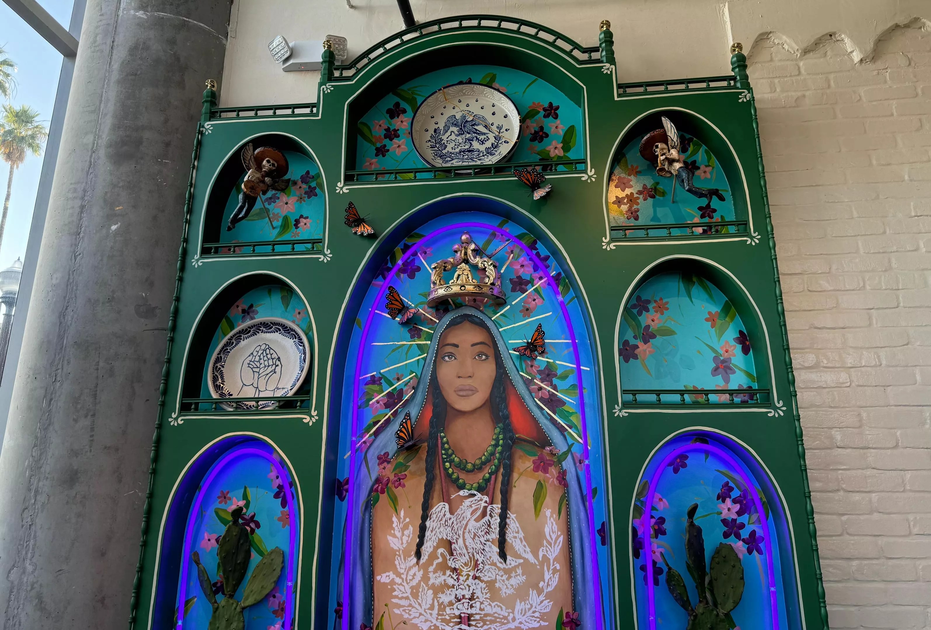 Taco Chelo’s latest location is designed by artist and co-owner Gennaro Garcia. The spot features a number of eye-catching elements, including a retablo. “My goal is to make people feel like they’re walking into one of my paintings,” he said in a press release.