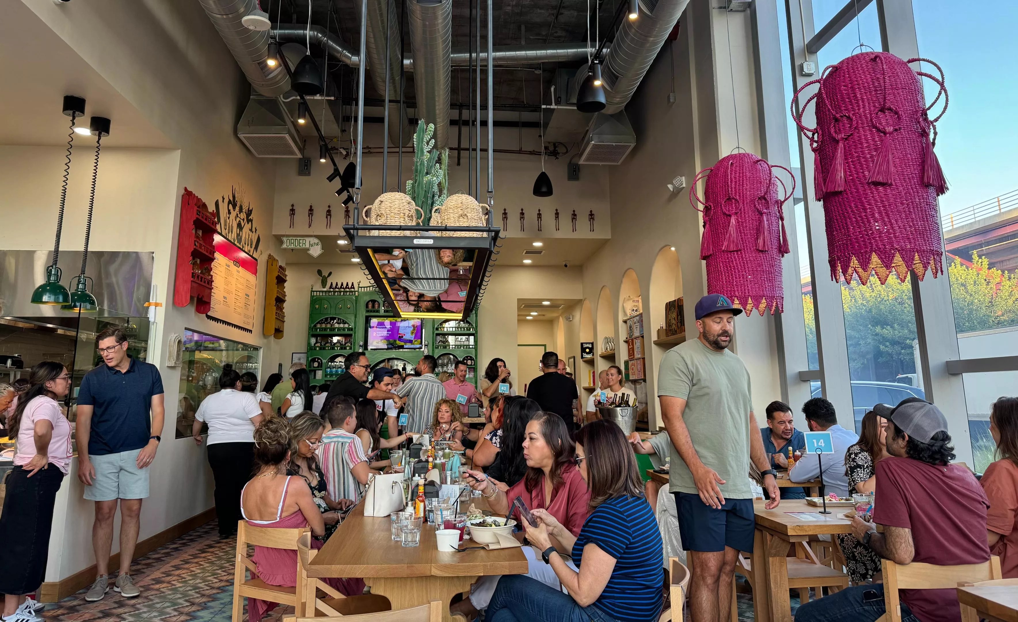 Taco Chelo’s Tempe location features bright pops of Kelly green, including at its bar.