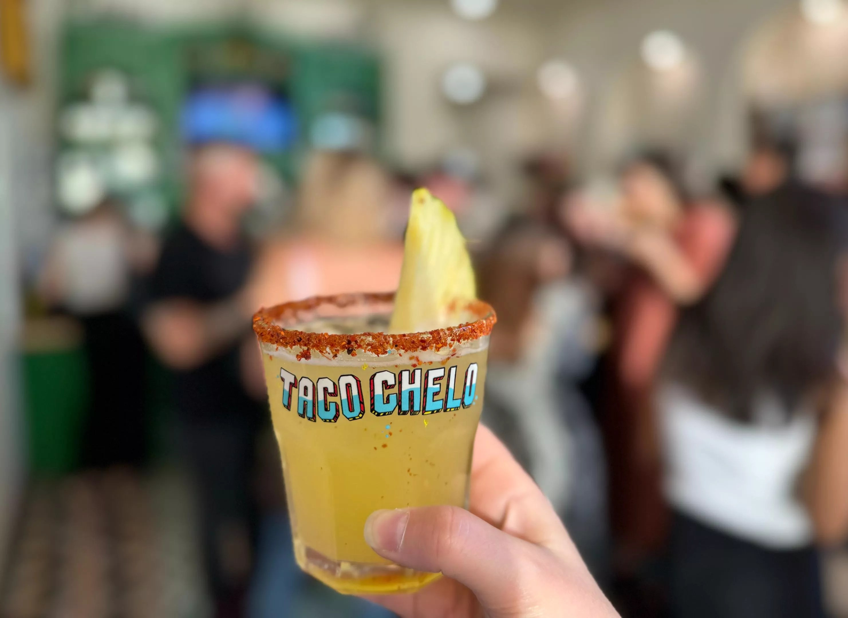 Taco Chelo’s drinks menu includes margaritas, micheladas and the Pica Pina, made with mezcal, agave, lime and pineapple, with a Tajin rim.