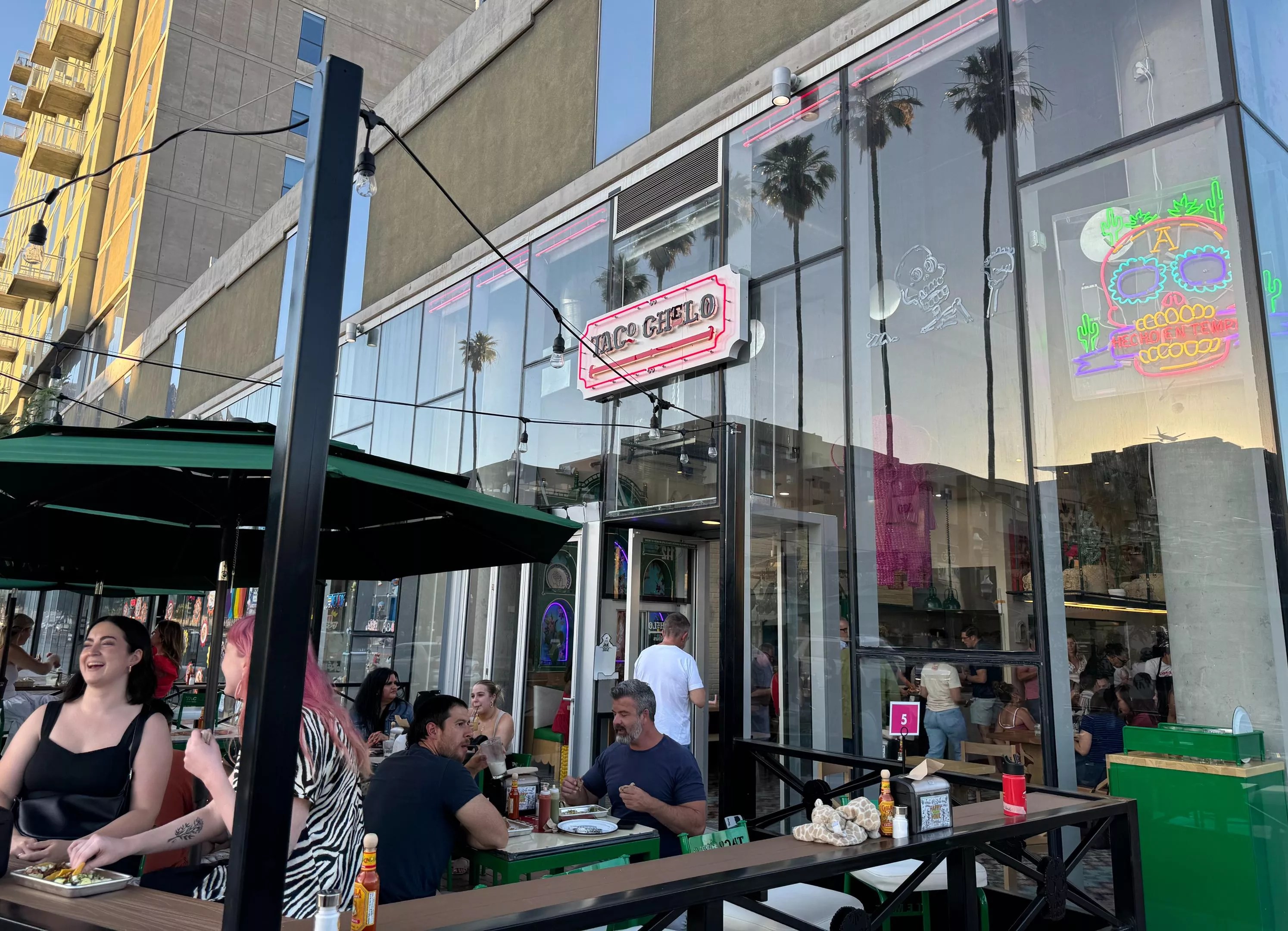 Taco Chelo’s latest location features a long community table.