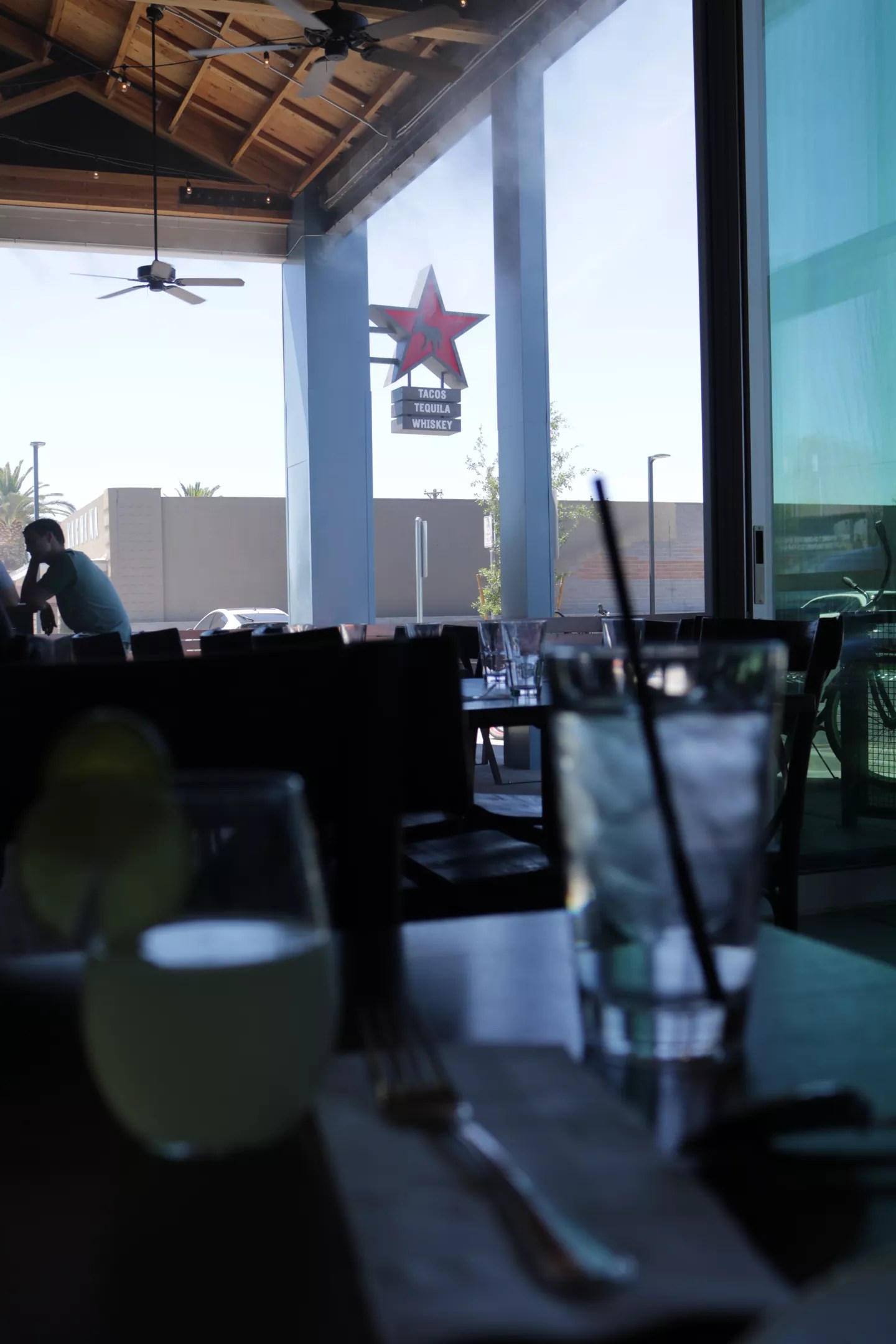 Young parents chatted over cocktails as their kids busied themselves with the colorful dips and chips laid out on almost every table. The misters were on full blast, keeping the industrial-looking, indoor-outdoor space comfortable despite the 100-degree temperature. The more interior side of the dining room opened onto the covered, mister-guarded patio, which meant nice, muted acoustics that ensured that the noise level never rose over a pleasant hum.