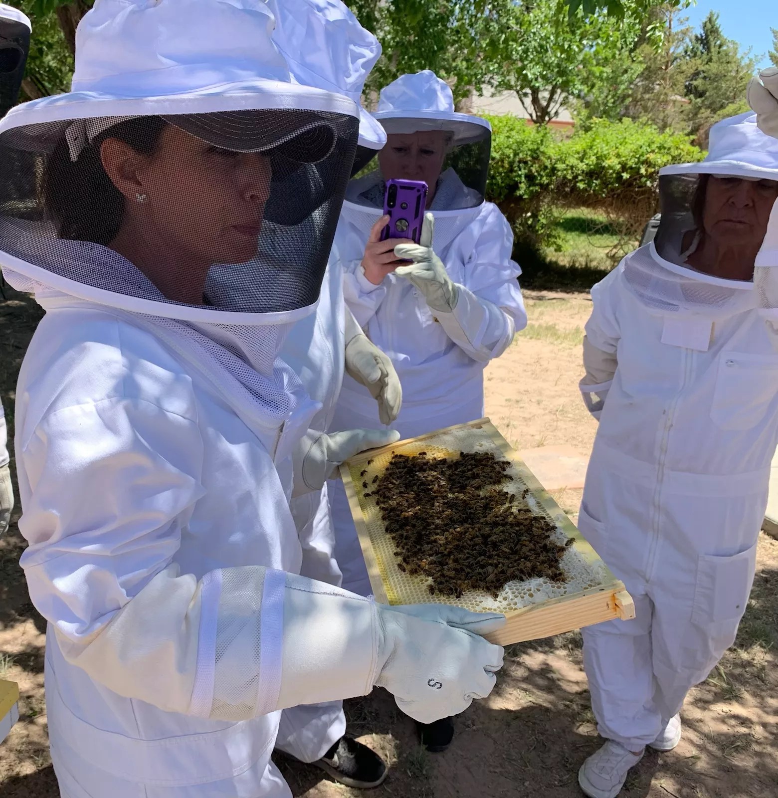 Folks curious about beekeeping can arrange visits to meet the bees ahead of time with the owners and bring the whole family. Connie leads a series of beginner beekeeping classes with 10 students at a time. For $65 for kids age 5 to 12 or $100 for adults, students don a bee suit and learn the basics of beekeeping. Classes run from September through May on different Arizona farms where the bees are kept.