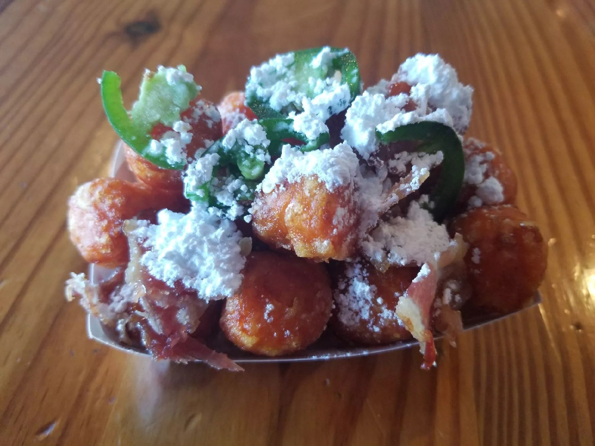 This Tempe staple may be known as a decades-old music venue, but have a seat and be ready to put away some tots. The Bao Chow menu at Yucca Tap Room has many treasures that come sided with top-tier tots. But if you’d like to make them the main attraction, order one of three tot-centered dishes. There’s Blasted in Bangkok, (a layer of crispy tots under bulgogi beef with kimchi, Sriracha aioli, and onions), then Mr. Barbecue (tots with pork, cheese, sour cream, onions, and golden barbecue sauce), and the True Believer (carne or chicken with cheese sauce, pice de gallo, sour cream, and green onions).