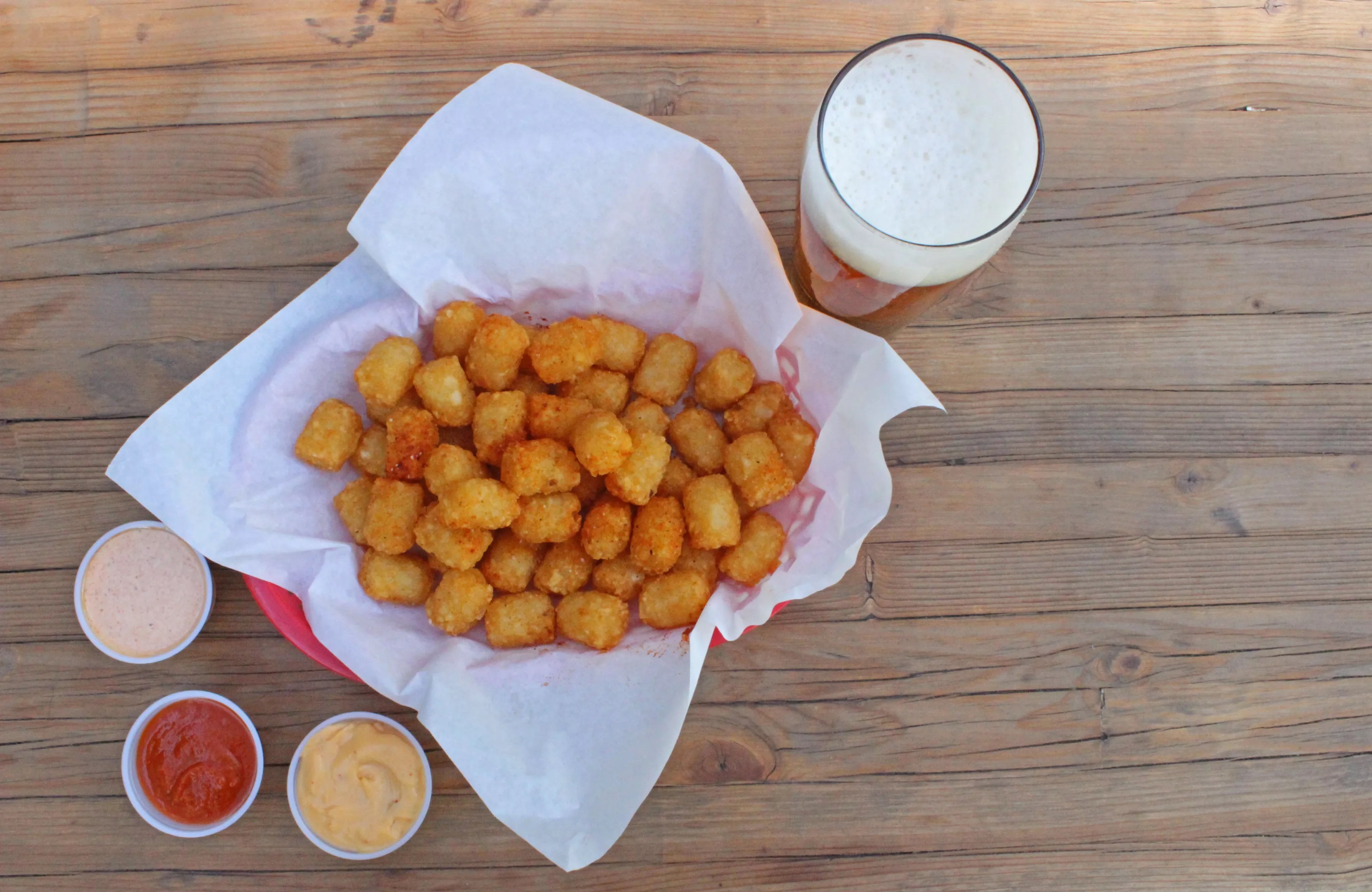 Angels Trumpet Ale House in downtown Phoenix has those 30 rotating taps of craft beer, but it also has some upscale pup food – including tater tots. The basket order here comes with a generous helping of piping hot and crispy tot-nuggets, which is sided with three house-made sauces – spicy ranch dressing, ketchup, and Sriracha mayo. The best place to take down this basket? That expansive, bistro-lighted patio of course.