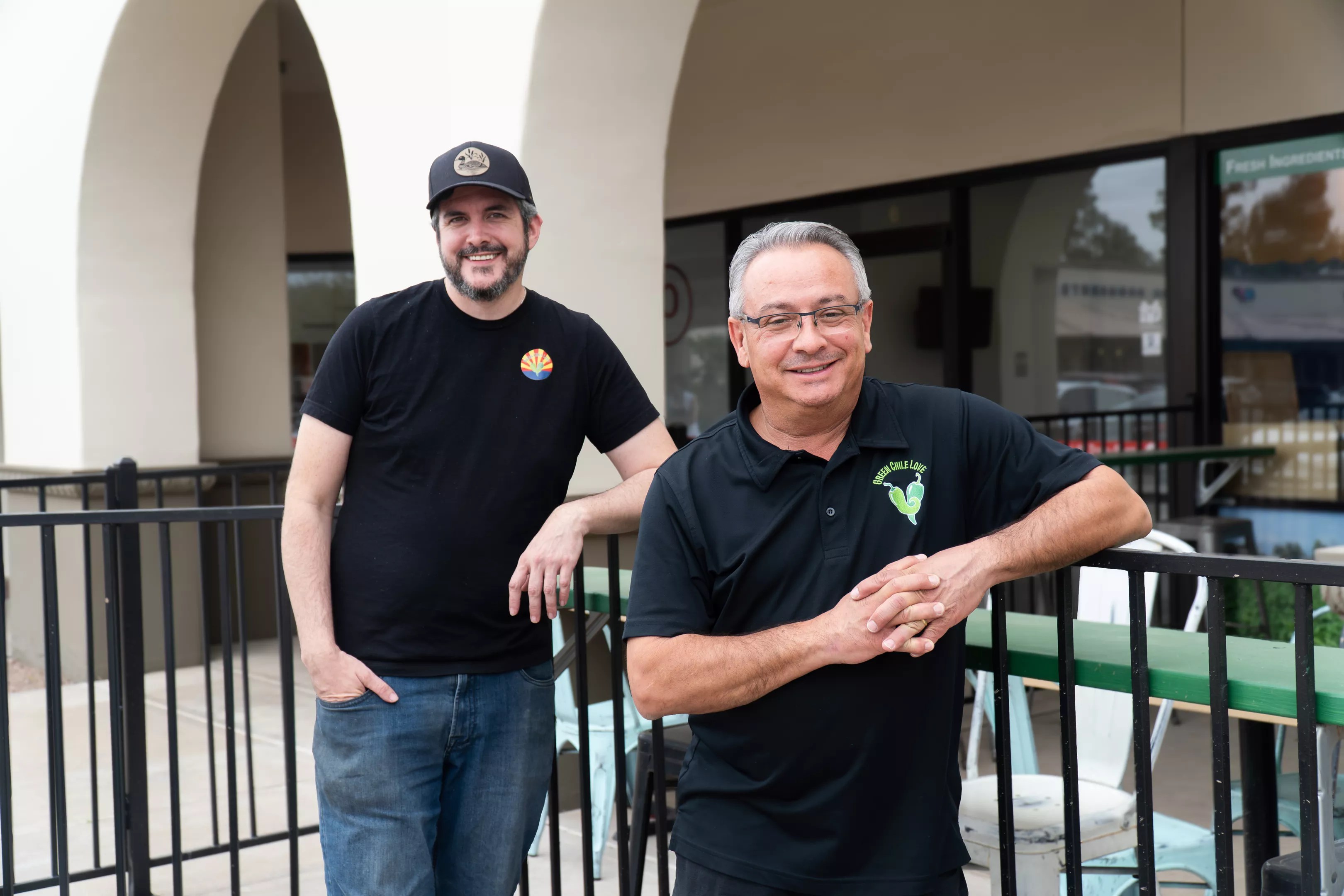 5630 S. Central Ave. This South Phoenix seafood staple celebrated its grand reopening on Feb. 8 following a three-month transformation. The restaurant got a total overhaul, with a new, swanky interior, a freshly painted mural and other new touches. Some things are the same as ever though, including the Cardenas family’s passion for fresh seafood and over-the-top presentations. Find maximalist mariscos at this South Phoenix spot. Green Chile Love owner and chef Dave Castaneda (right) poses with cook Leon Eubanks (left) in front of the new Ahwatukee restaurant. Lauren Topor