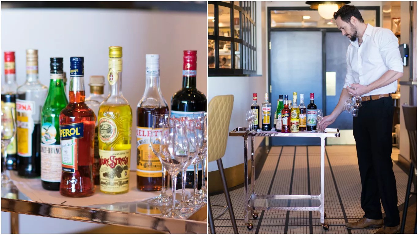 Head bartender Conor Cook loads up the amaro cart with a wide variety of the Italian liqueur.