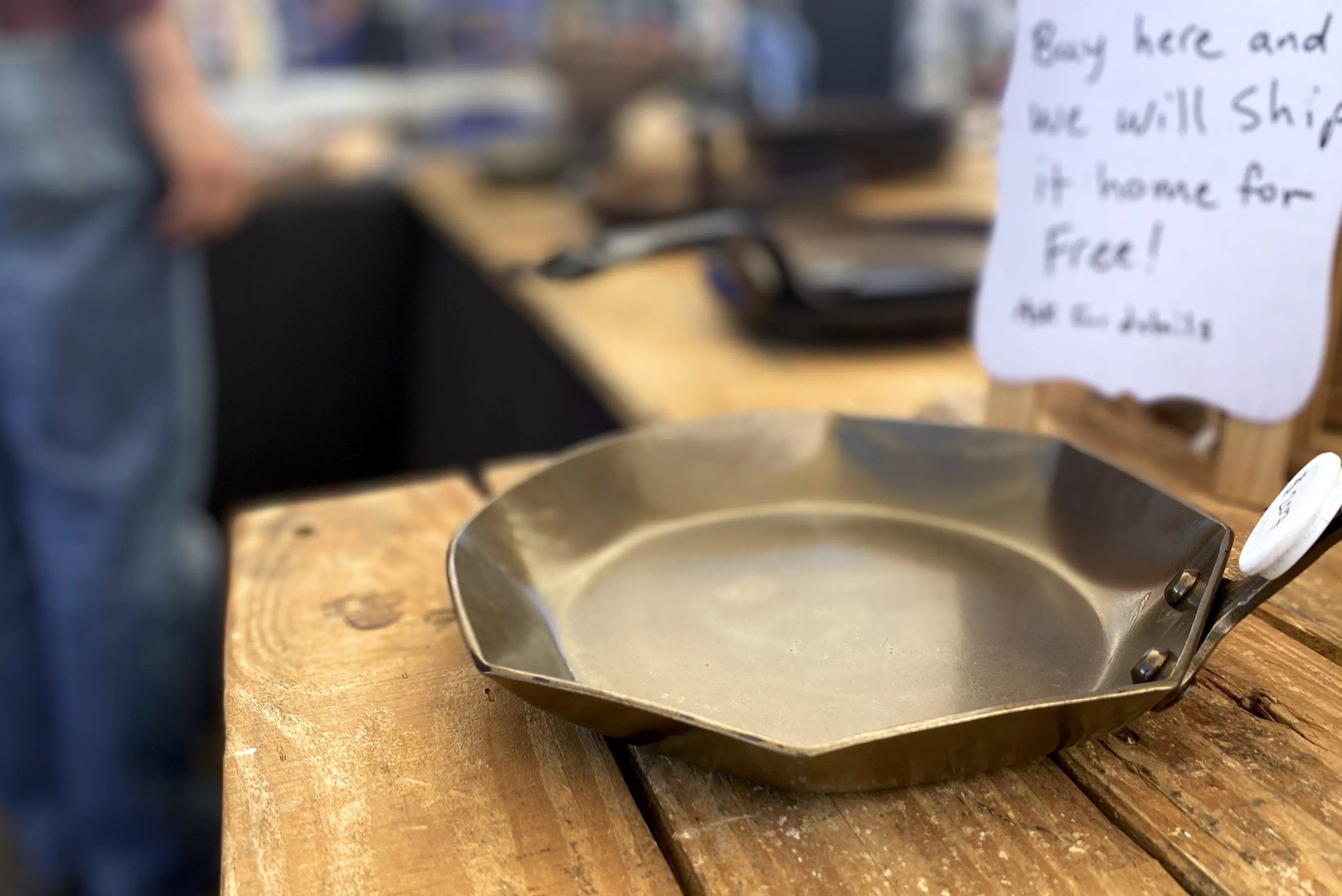 For parents, sisters, aunts, best friends, homebodies, and gardeners. Bene Vivendo offers a lot of something special for the someone special on your list. Owner and master gardener Emily Heller grows, harvests, and creates gorgeous fresh bouquets of snapdragons, sweet William, and sunflowers ($25 each or two for $40), dried aromatic arrangements of celosia and poppy seed pods ($35), and hibiscus holiday gift boxes beautifully packed with hibiscus tea, hibiscus seeds, and hibiscus sugar ($50). But most special of them all – and only available on December 10 – Heller will sell her locally-harvested holiday wreaths, total head turners made with a mix of eucalyptus, myrtle, and berries that’ll deck out any door (starting at $75). Wow your family with hand-forged cookware made in Goodyear. Allison Young