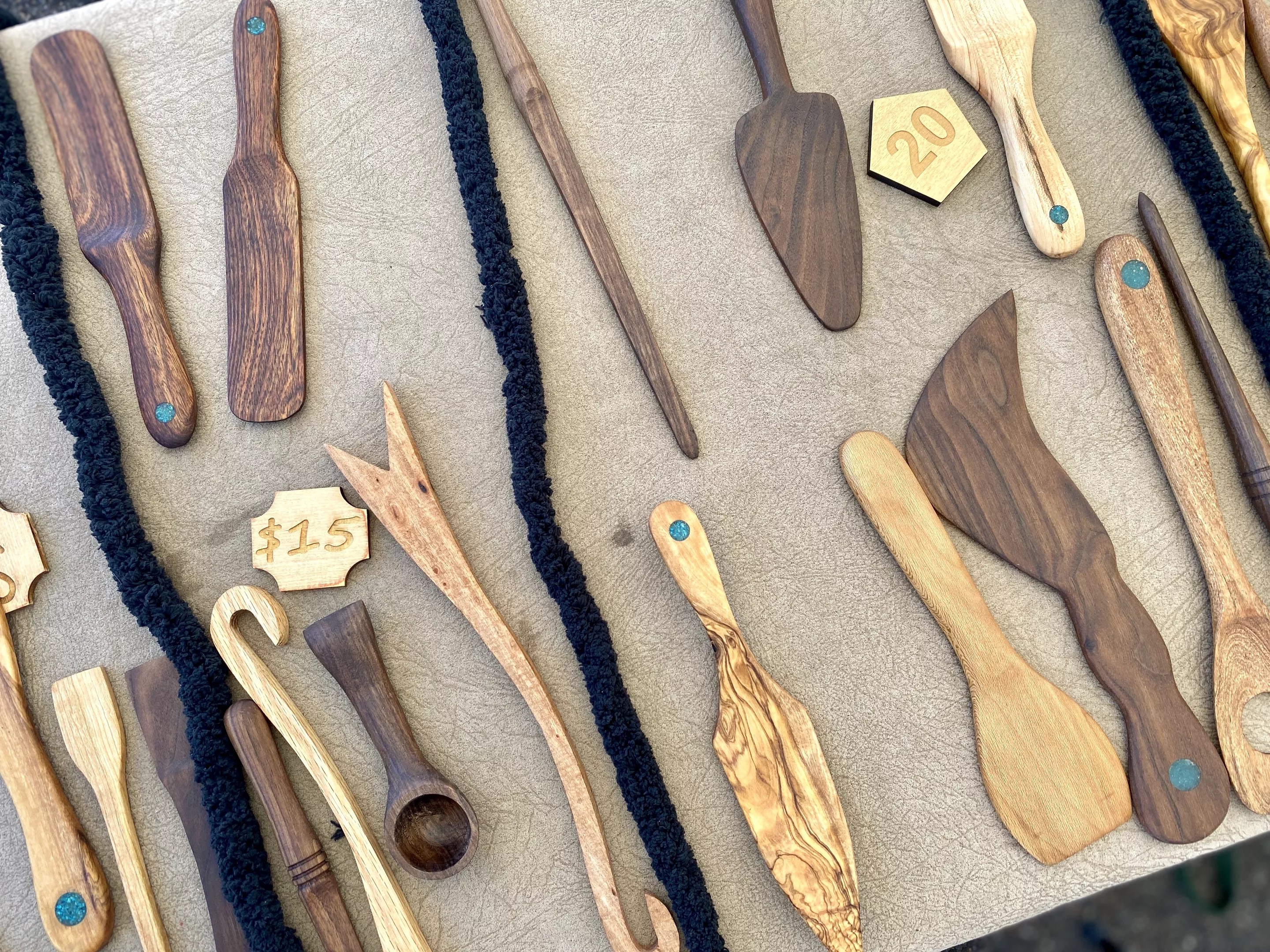 For pasta lovers, busy families, and holiday hosts. The holidays can feel more like go-go-go than ho-ho-ho. That’s where the present of pasta comes in. Sonoran Pasta Co. sells everything for a homecooked meal, from fresh pasta made from heritage grains fashioned in novel noodle shapes like bucatini, mafaldine, and gemelli ($10 for 12 oz.), to powerhouse sauces like pomodoro with organic Bianco DiNapoli tomatoes ($9), bolognese with Arizona pasture-raised beef and pork ($11), and pesto spiked with locally-grown kale and butternut squash ($12). They also have gluten-free options and a rotating sauce of the month. Think of it like a restaurant gift card, but better. Fallen Wood Turnings’ cooking utensils double as beautiful showpieces. Allison Young