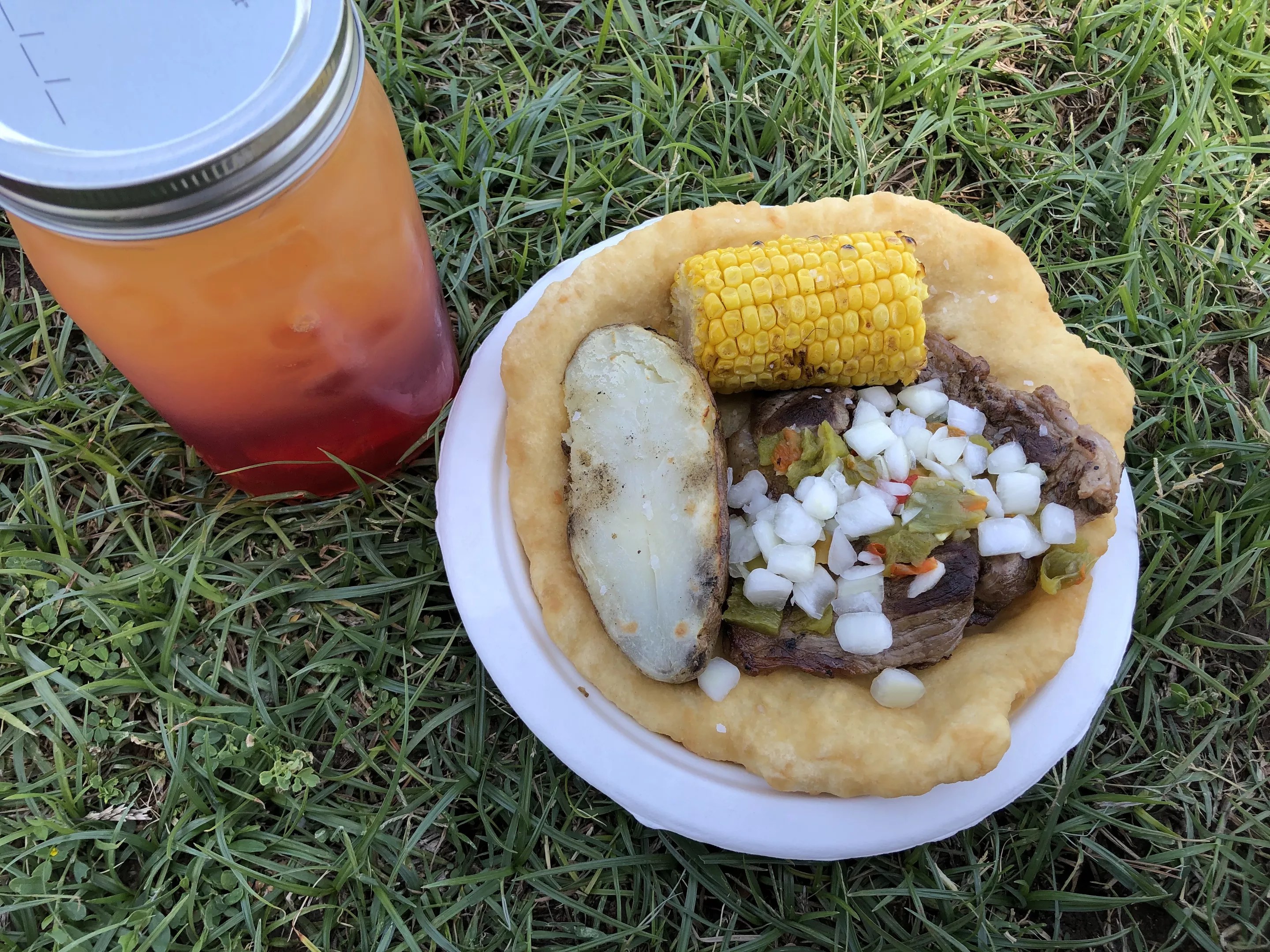 In the early days of the pandemic, the food truck Emerson Fry Bread ditched its wandering to park regularly by Phoenix Indian Medical Center. And so it began to amass a cult following for its new Navajo mutton sandwich, made by operators Loren Emerson and Roxanne Wilson, the latter Diné. They build it on a lumpy tan pillow of warm, unfolded frybread. Grilled mutton goes on next – seasoned with nada but salt and pepper, meat right off the leg. Onions and Hatch chiles are showered atop, baked potato and a segment of corncob placed along the rim. The sandwich is stark, with chew, history, rare warmth, and deep animal flavor.
