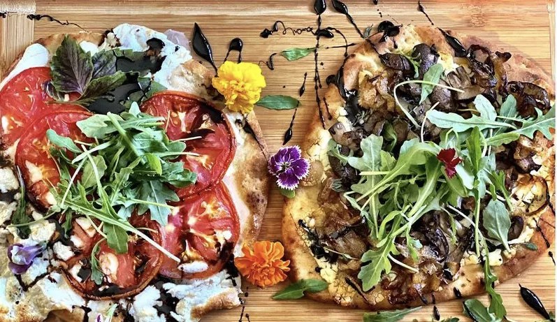 What’s to come: Margherita flatbread and caramelized onions, mushroom, and goat cheese with bourbon balsamic.