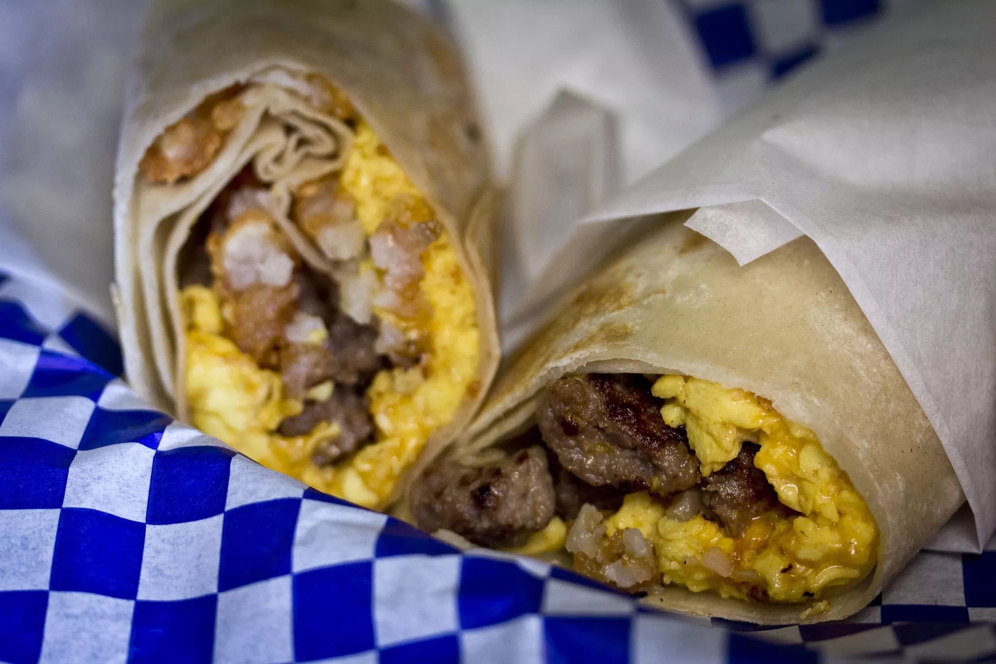 A little basket will arrive lined with a piece of blue-and-white checkered wax paper – weighed down by your new favorite breakfast burrito. A warm tortilla is packed with hot scrambled eggs stuck to crispy hash browns with melted cheddar cheese. One of the biggest decisions you’ll make that morning: whether to have that tortilla also stuffed with bacon or sausage.