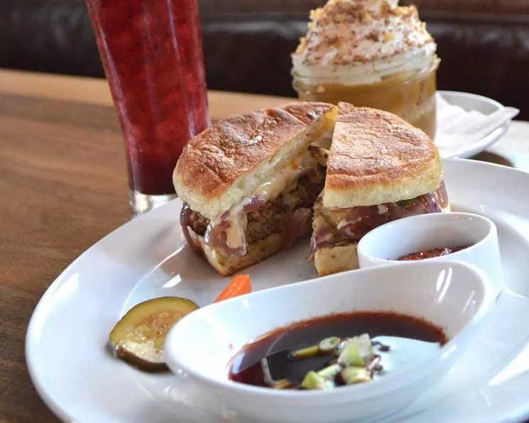 49: “Dragon” Dumpling Burger at Bitter & TwistedThere may not be a more classic, and indulgent, way to experience Bitter & Twisted in downtown Phoenix than with a late-night supper consisting of executive chef Bob Tam’s “Dragon” Dumpling burger.