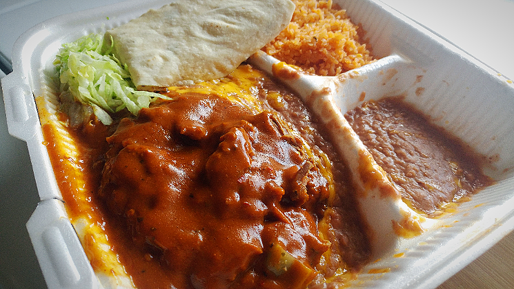 Everyone has their own Carolina’s favorite, but it’s worth giving the breakfast burritos a shout-out. The machaca and egg burrito, upgraded with refried beans and potatoes, will keep you going until early afternoon. But might we recommend the machaca plate? It’s Number 5 on the combo menu, and you can pick the red or green sauce. There is something quintessential about the red sauce. It’s a thick, creamy, oniony red sauce, and it nearly smothers the life out of the soft beefy, shredded bundles of meat. It’s so saucy, in fact, it gives you the perfect excuse to tear into one of those hot flour tortillas, which is kind of the Carolina’s version of a napkin.