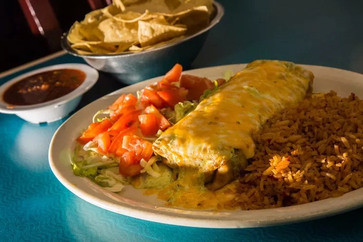 44: The Baja Spinach and Feta Cheese Chimi at Mi PatioMi Patio Mexican Restaurant is an old-school Phoenix establishment that’s known for super-fast chip-and-salsa service, house-made margaritas, and some of the best smothered chimis this side of any major waterway.