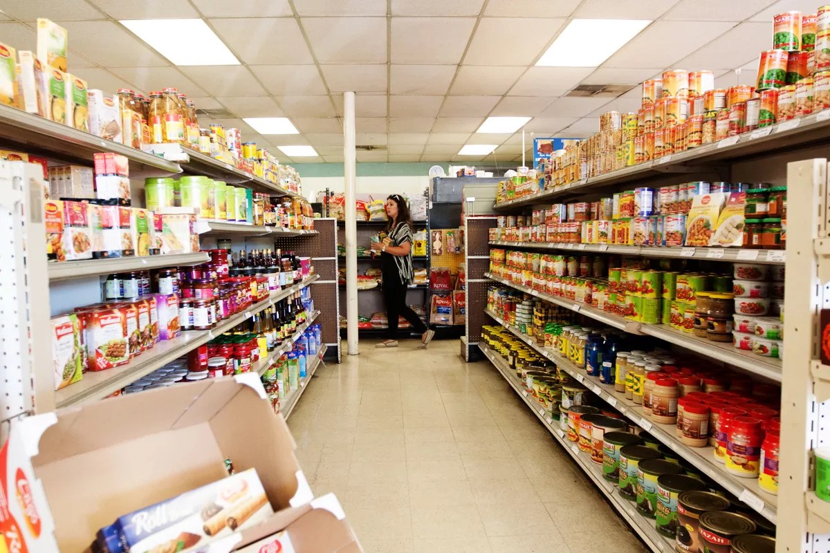 A shopper peruses the aisles of Princess Market while she waits for her take-out order.