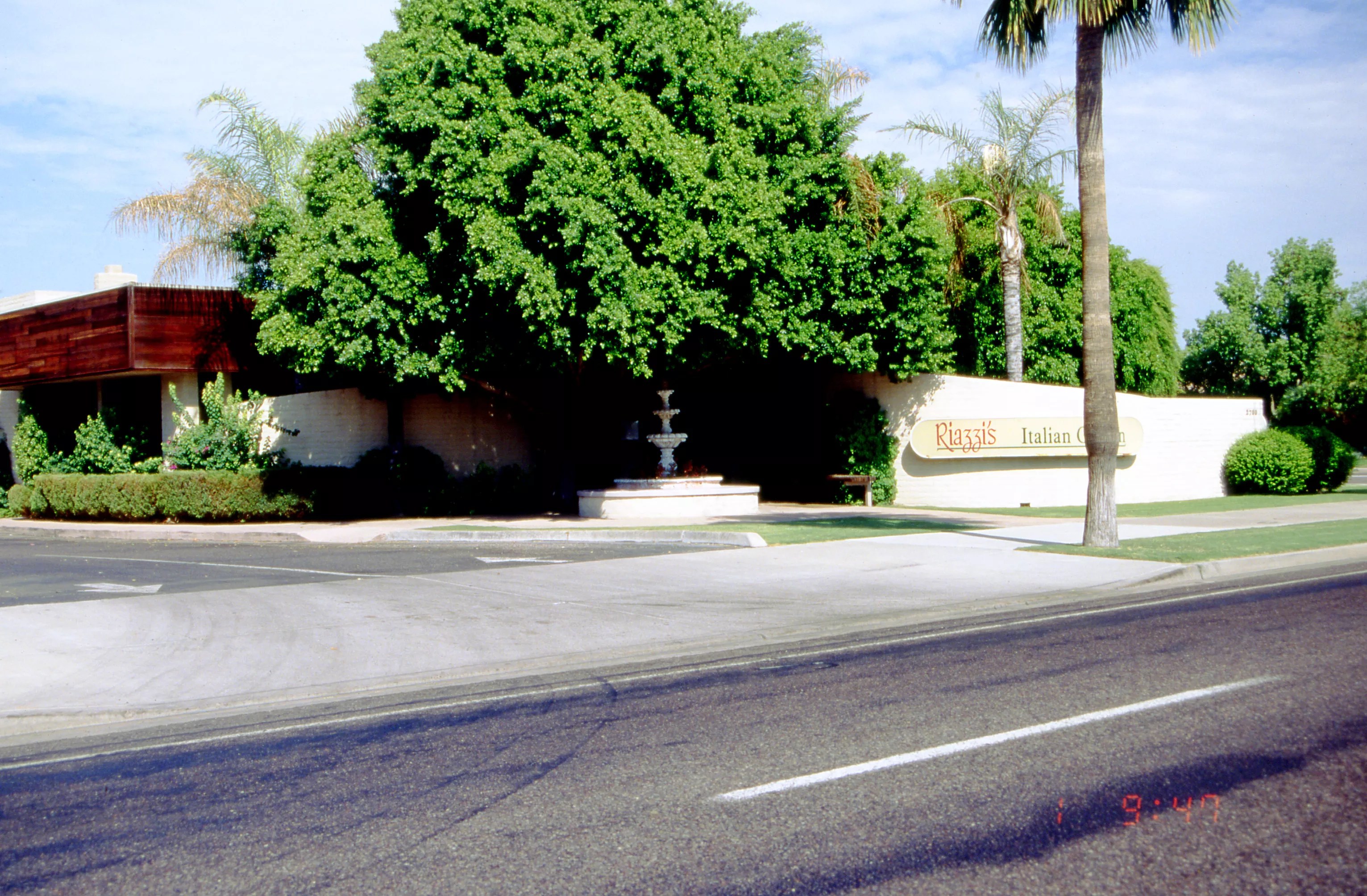 Quartiere (Italian for “district” or “neighborhood”) was an Italian restaurant in operation from 2017 to 2019 in a standalone structure at the southwest corner of Mill Avenue and Alameda Drive. But from 1989 to 2017, the building was home to Riazzi’s Italian Garden, a Tempe-famous, family-owned red-sauce joint that hopscotched around the Valley before landing on lower Mill Avenue. “It was the epitome of Italian restaurants,” says Kelly-Phillips, the Time Out Lounge owner. (Time Out was located almost directly across the street, and Riazzi’s staff would come by for drinks after their shifts). Kelly-Phillips recalls vines across the patio, big circular booths, the “horrible” flower print carpet, and a fireplace at the bar. It was the kind of place you could go for a glass of chianti and the “best” Italian bread. But, in the last couple years, “You could tell it was getting a little faded.” We recently came across some vintage Tempe photos that show places with names like Cisco’s Mexican Food and Biscuitroot Park and Bunky’s Food and Spirits in the spot. A new tenant is on the way, a taproom and restaurant called The Golden Pineapple, brought to Tempe by the gang behind The Sleepy Whale in downtown Chandler and The Theodore in downtown Phoenix, both high-end craft beer establishments. “We were introduced to the Riazzi’s building and fell in love!” Justin Evans writes in an email. “Stand alone, giant space, lots of parking, large kitchen, beautiful patio, and that amazing tree out front! It fits our mold!”