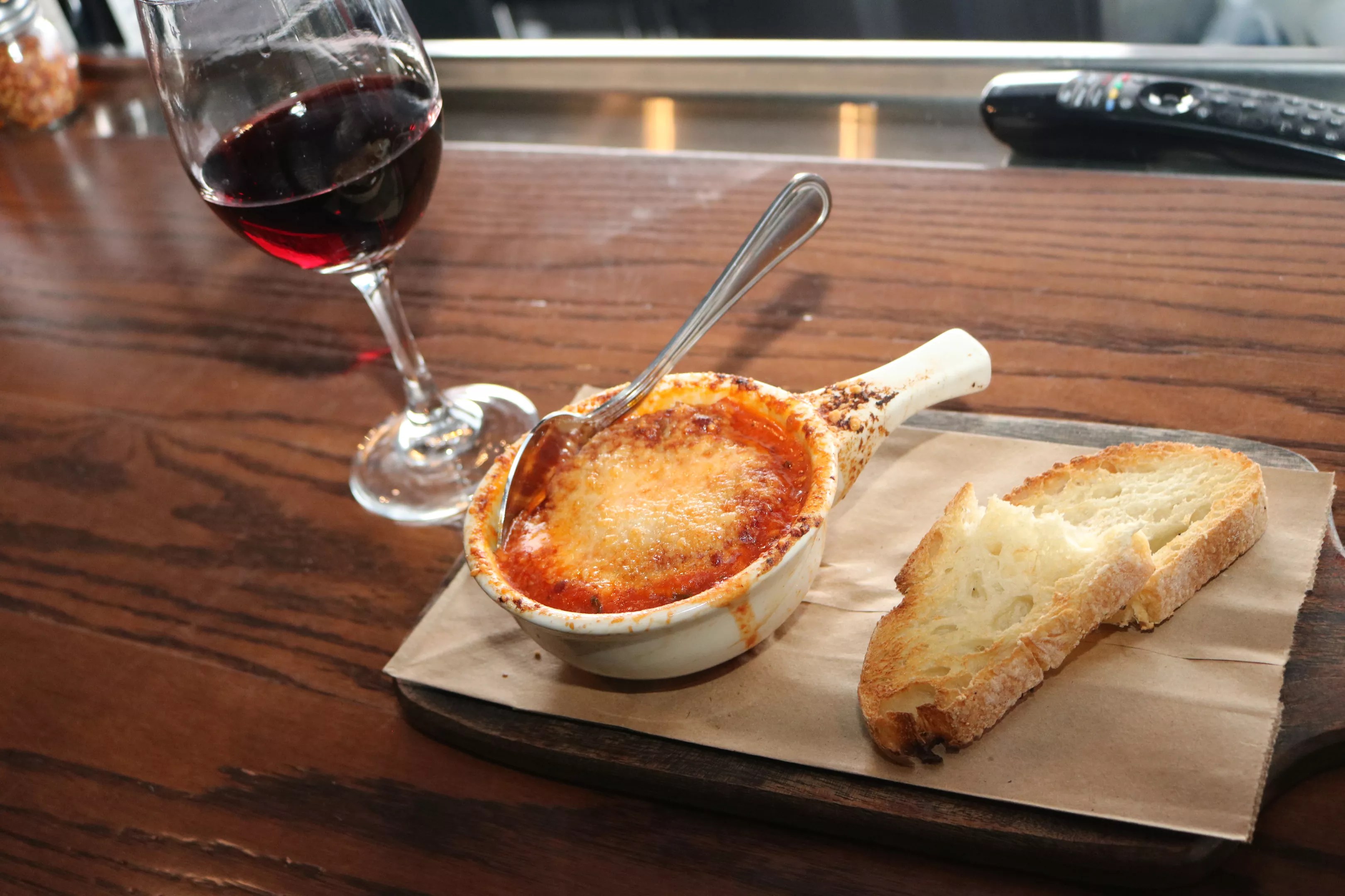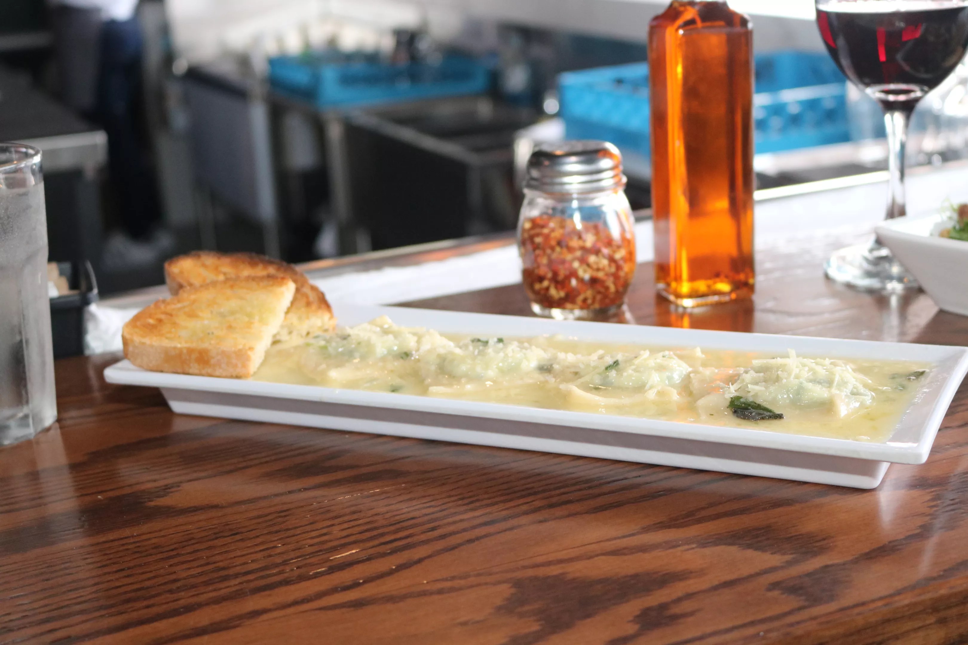 He then suggested “adding spicy olive oil and crushed peppers to the ravioli,” before darting back to the kitchen as the restaurant received a drive-thru notification.