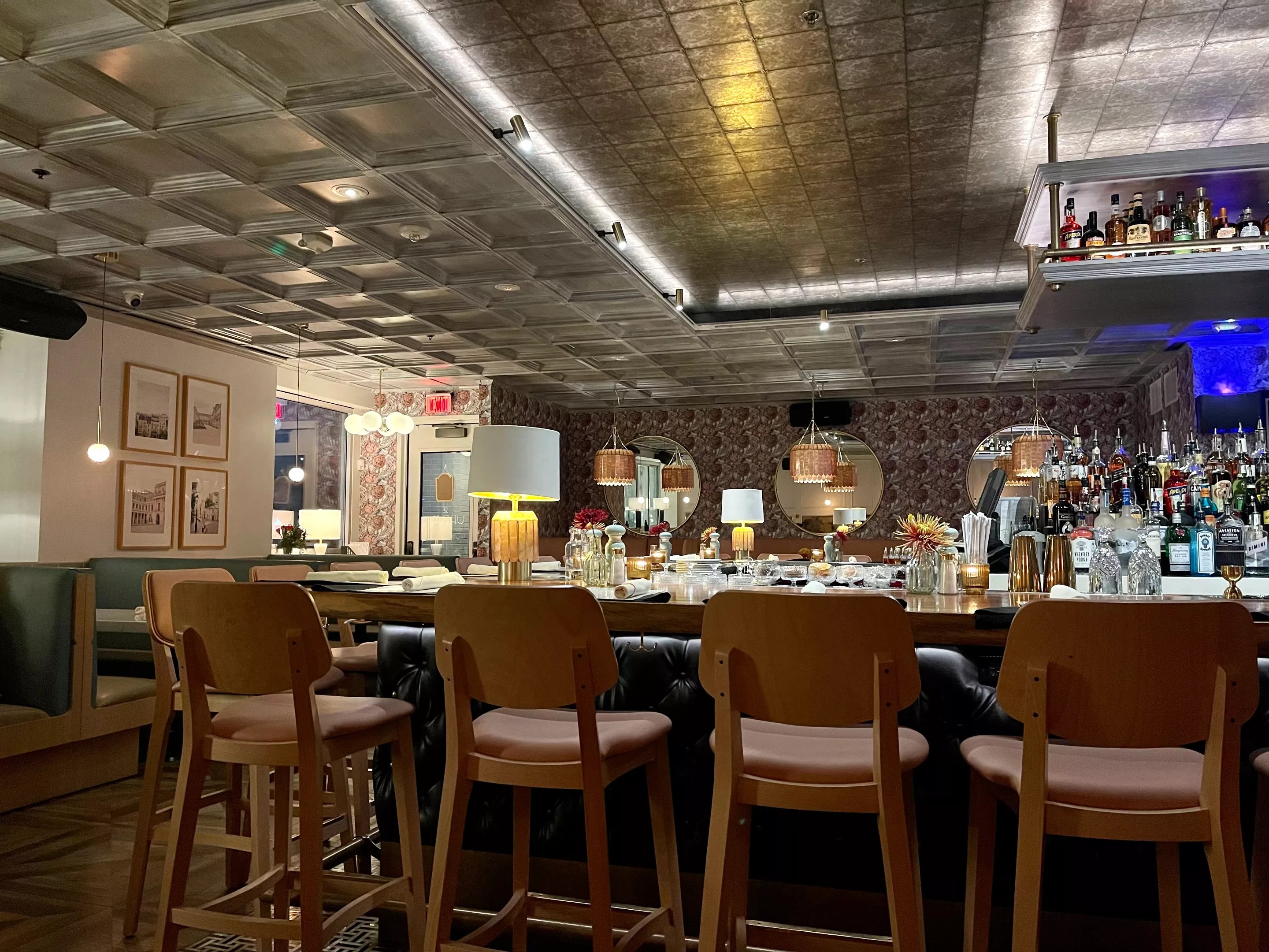 The bar at St. Urban was decorated with rosy wallpaper, smoked mirrors and plush seating.