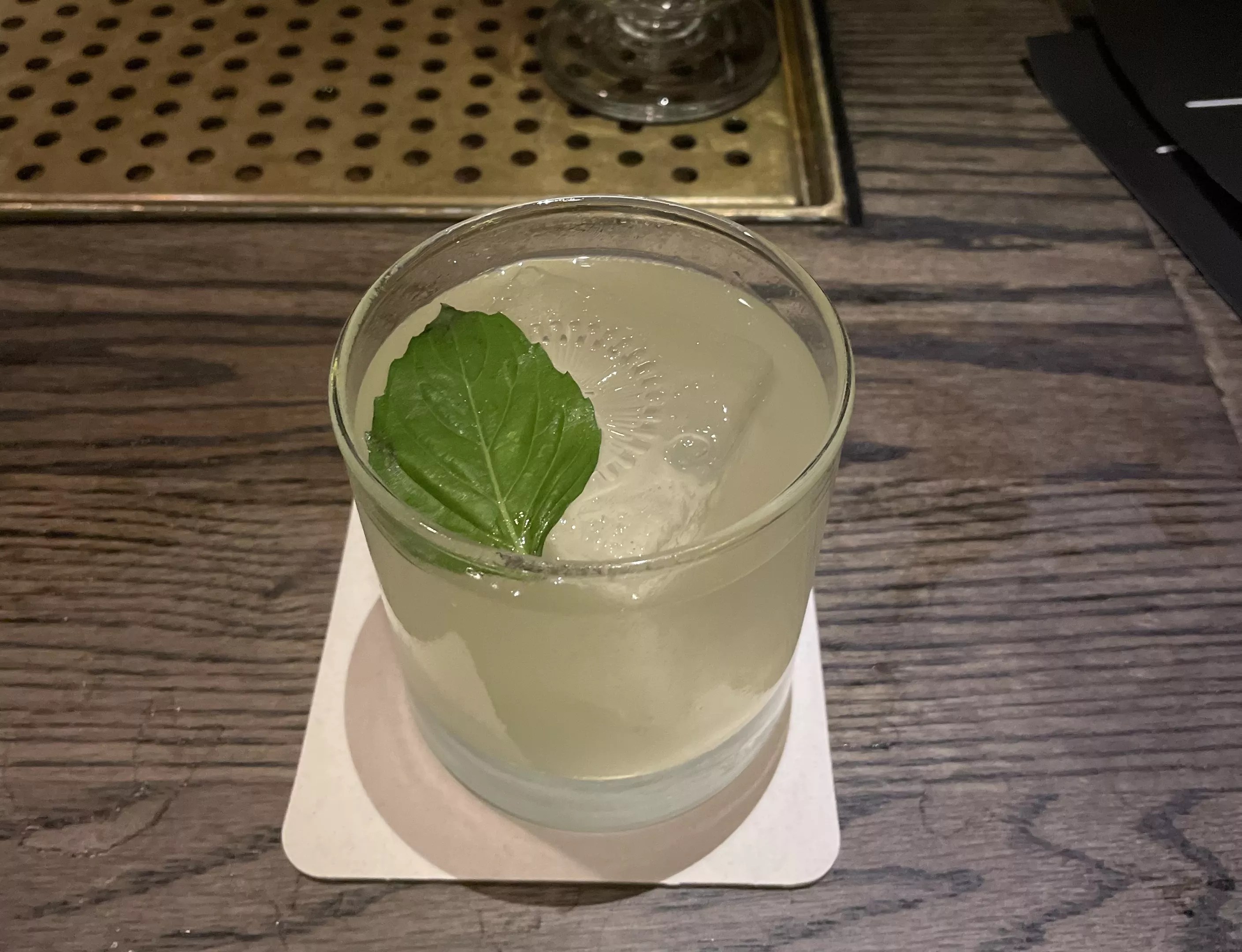 Sunny’s Lounge cocktail Thai Me Down shakes up gin, falernum, Thai Basil, lime juice and sansho pepper for a refreshing, citrus-forward sip.