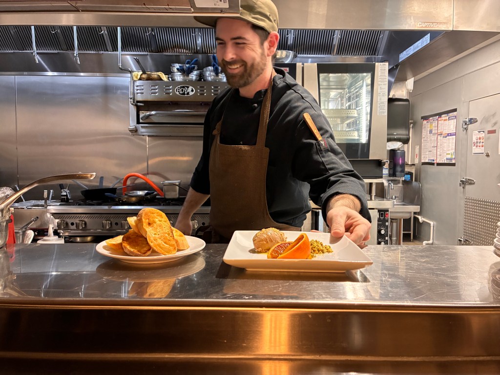 Eventually, Ehret’s cooking and travels took him further north to Asheville, North Carolina. There, he worked at the now-shuttered Seven Sows and Zambra Tapas and Wine Bar, where hyper-seasonal, ever-rotating menus were the norm. There, he got a thorough crash course in small plate menus and rotating fresh ingredients, cranking out seven new courses every week for three years.