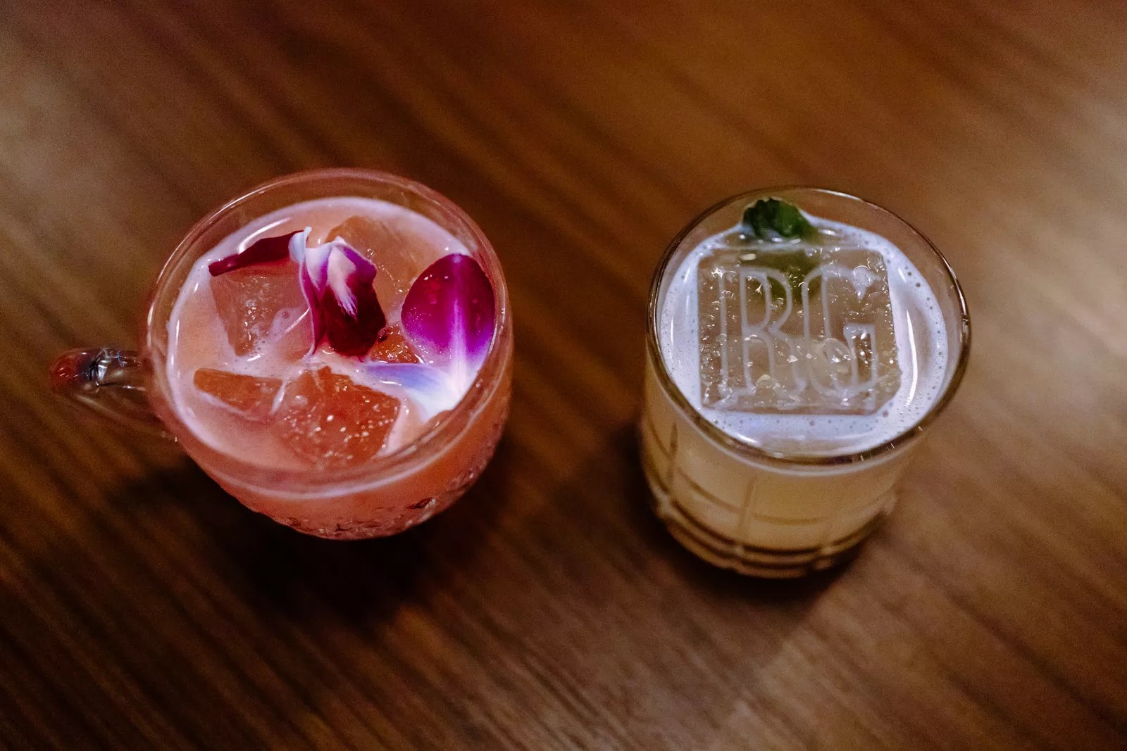 For fans of strawberry lemonade, try the Garden Pleasures. The refreshing summertime beverage is made with strawberry gin, rhubarb, basil, lemon, and demerara. An engraved ice cube features the letters “RG” etched into the top, completing a drink that is pretty, sophisticated, and downright tasty.