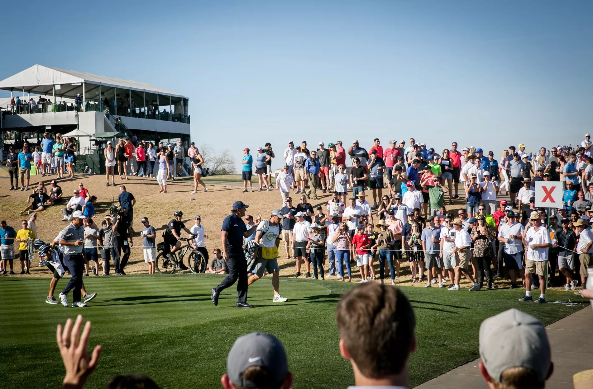 The crowd goes wild as Phil Mickelson walks by.