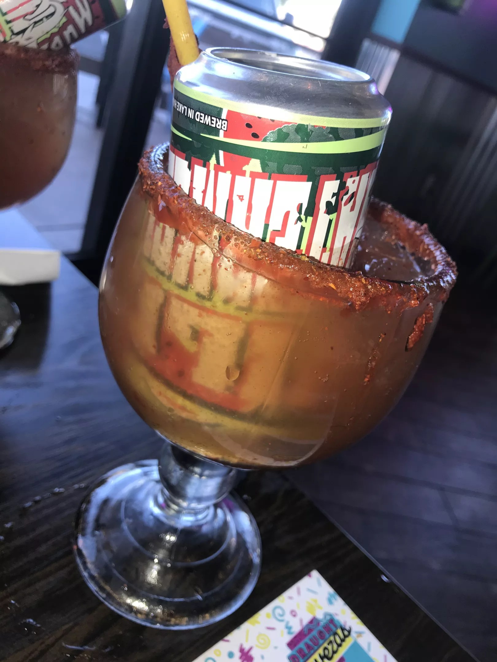 Multiple Locations The Michelada Chingona comes with a menacing-looking tamarindo candy stick, doubling as a sweet and tart drinking straw, propped up on top of the glass. Mike Madriaga