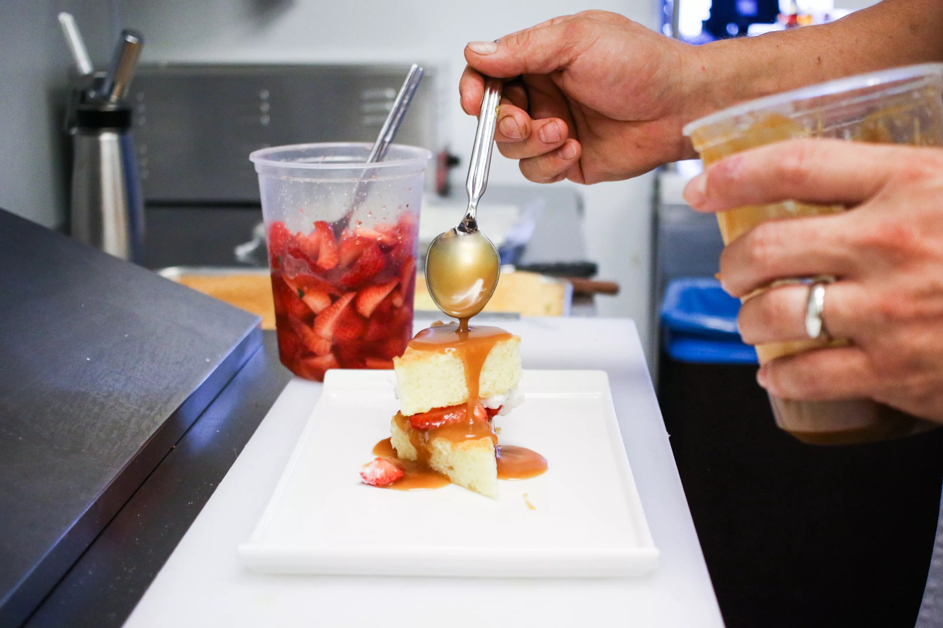 5813 North Seventh Street Chef and owner Branden Levine constructs Sel’s strawberry marzipan shortcake. Evie Carpenter