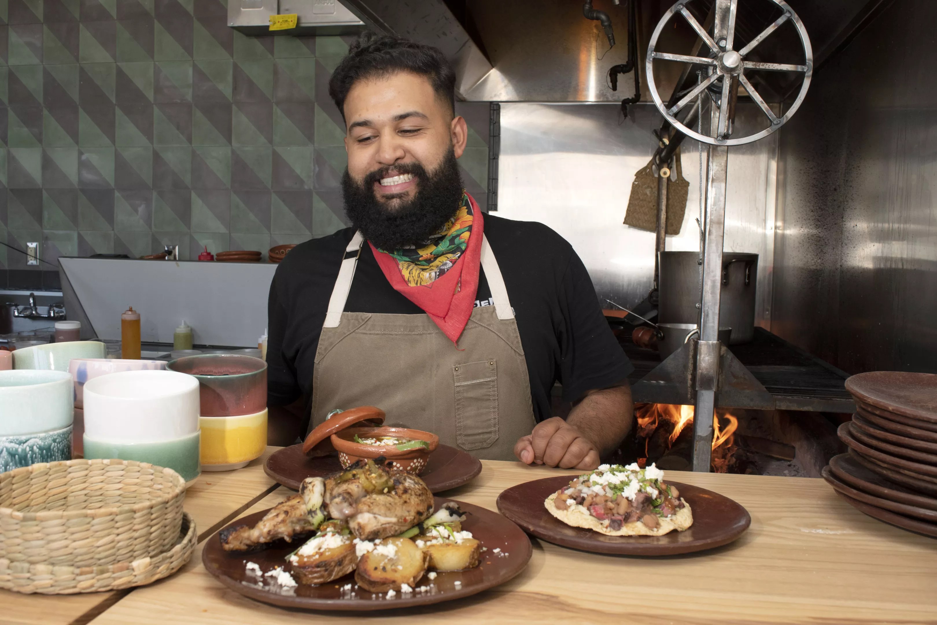 At Bacanora, Andrade tends a wood grill with the finesse of a jeweler and the joy of a kid at recess. He grills steak, chicken, octopus, potatoes, pots of beans, elotes, even the raw materials for salsa, visibly having a good time, even greeting people as they enter his tiny glass-walled space. Food ripples with soulful flavor. Tunes bump. Well-made cocktails like Oaxacan Old Fashioned and bacanora margaritas flow. Crowds stroll by on Grand Avenue. Briefly, life is about as good as it can be.