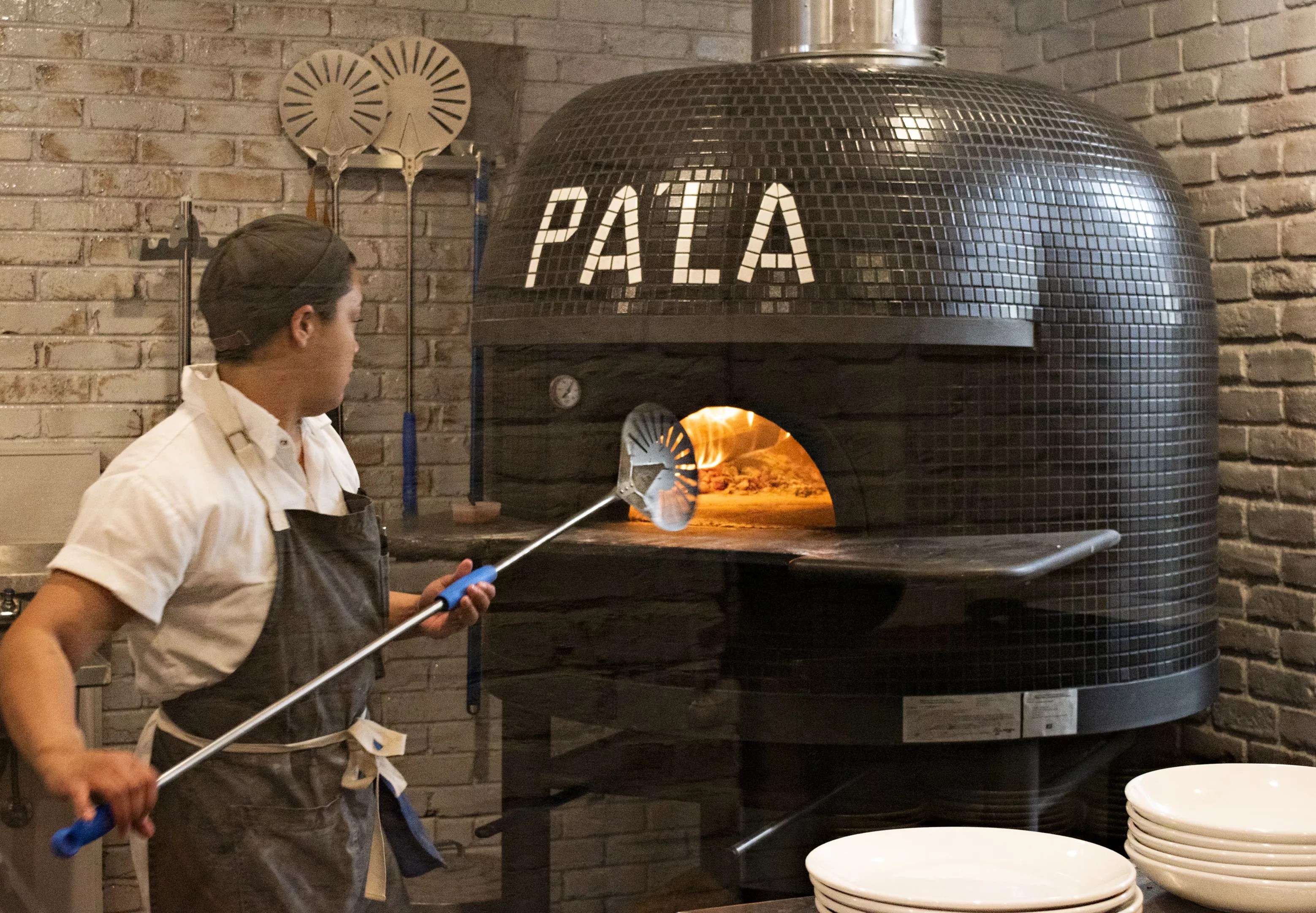 Peeling pizza and bread from the Pa’La Downtown wood-fired oven.