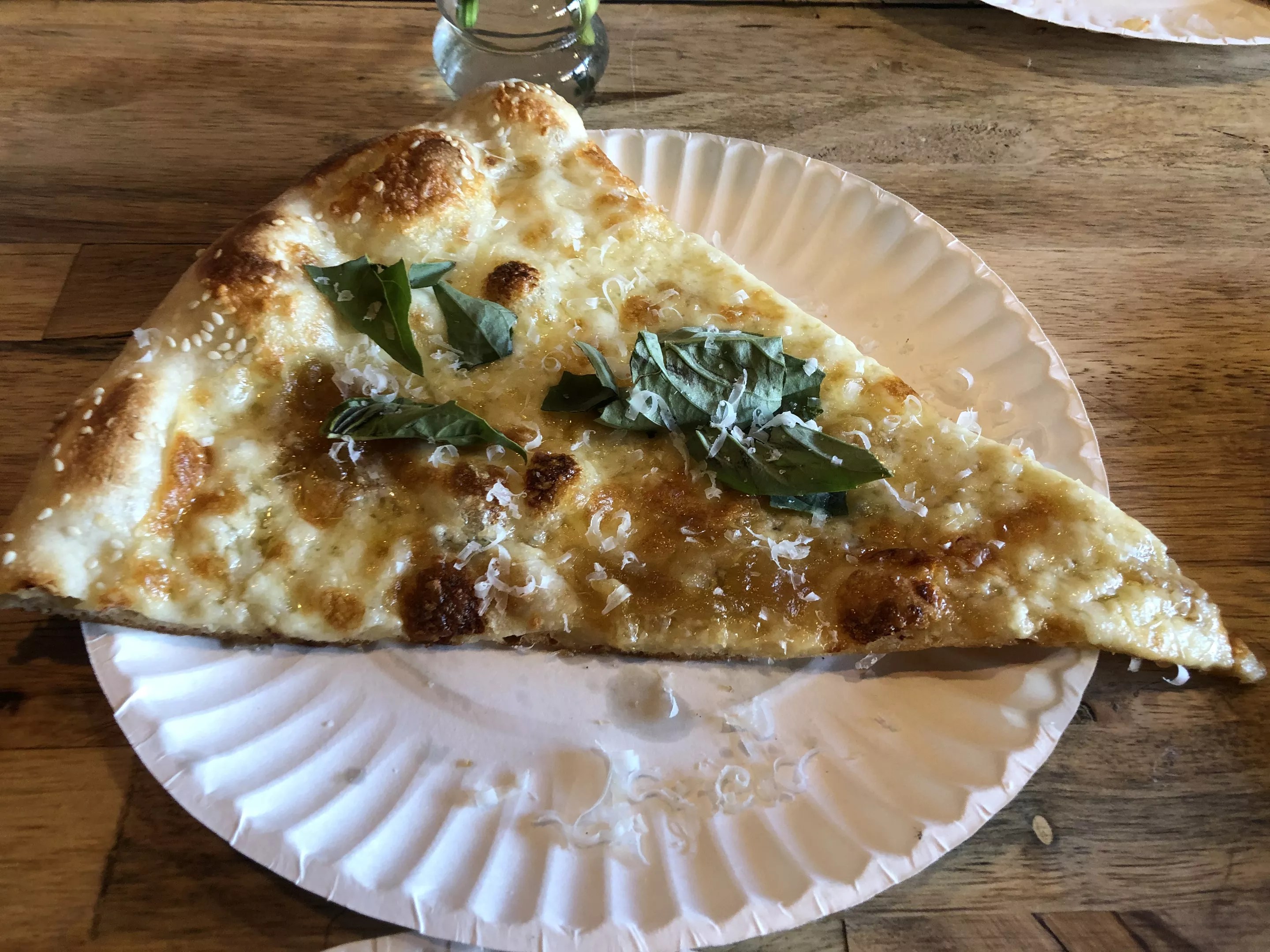 His best slice? White with a faintly funky cheese blend, sesame seeds, and the sweetness of caramelized onions that melt into pizza almost like jam. This slice is already one of the most memorable pizzas in town – and Locust is yet to fully integrate his wood oven and unleash all of his pizzas.