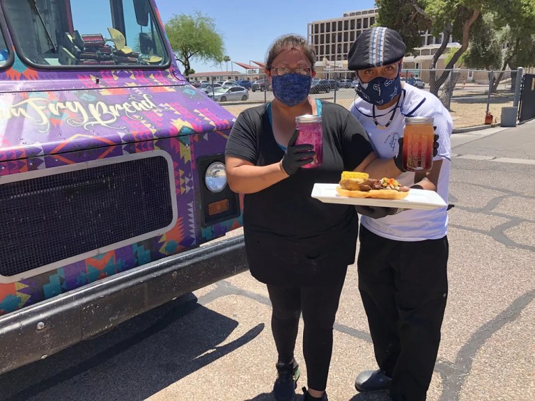 Anybody familiar with our food truck scene knows that one of the longtime greats is Emerson Fry Bread, mobile purveyor of American Indian foods and gemlike drinks. Classically trained Loren Emerson, who is Mohave, Quechan, and Mexican, and Dine chef Roxanne Wilson are behind the truck, along with their kids. You can’t roll up to this truck without ordering a drink. They come in tall Mason jars sloshing with ice. A nuclear-pink prickly pear lemonade kicks with the watermelon-meets-strawberry-meets-guava flavor of cactus fruit. The Sedona Sunset iced tea also has a cult following. Emerson’s fry bread is puffy and pale brown with rich flavor and plenty of chew. You can eat it plain, sure. But souped up into a sandwich or taco, it catapults this truck into a league of its own. The classic order at Emerson Fry Bread is the Jazzy, grilled carne asada served as an Indian taco with no decorations. An upstart newcomer that has dethroned the former king, however, is this truck’s mutton sandwich. Sheep leg grilled to high succulence and flaked onto fry bread with onion, chiles, and half of a baked potato, this gut-busting sandwich is one of the great simple pleasures of the Valley food scene. New Normal: Follow the Emerson Fry Bread Facebook page for current or upcoming service locations. Text 602-516-8228 for any quick pick-ups or questions.