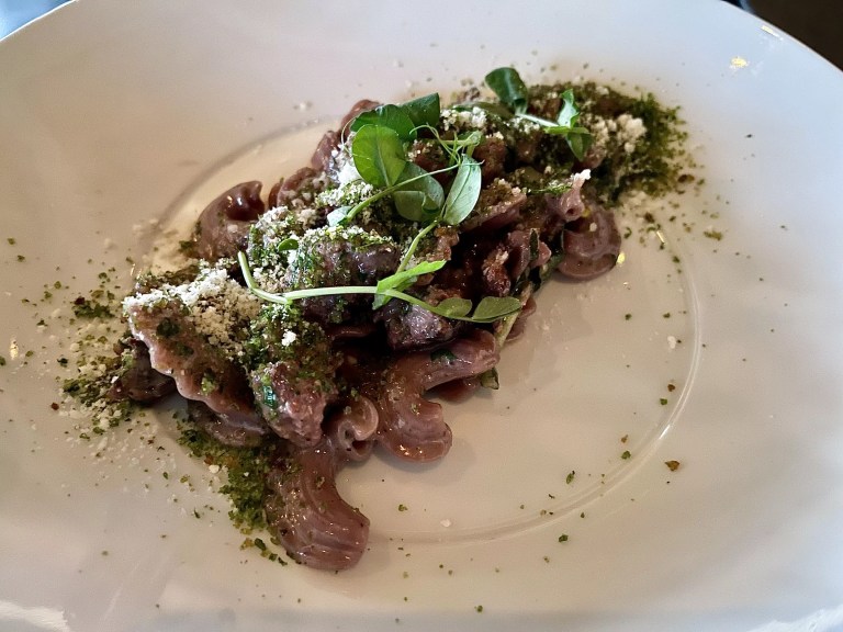 Chances are you will have to make reservations to get a spot at Fat Ox. This fine dining experience is curated with special attention to the drinks, appetizers and, of course, entrees. The cocktail (or “oxtail”) menu includes creations such as the Desert Rain, made with mezcal, sotol, blood orange, fig leaf and lime, and the Spitfire, which blends tequila with cocchi, pineapple matcha, smoked jalapeño and yuzu. Both complement the house bread that is served with a light ricotta spread. The steamed mussels and veal meatballs make charming appetizers. When it comes to entrees, the Rosso Creste di Gallo is a stunning plate of pasta made with red wine, dandelion greens, duck sausage, mushrooms and huckleberries. Go all out with the 25 Layer Lasagna, or splurge on a steak. We’re confident that whatever you try will leave you wanting to taste every item on the menu. Chef Matt Carter pays attention to even the tiniest detail, and it shows.