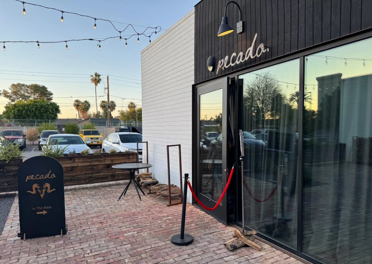 In Arcadia, tucked behind the bright, airy Santo lies the dark, sleek, sultry Pecado. The juxtaposition is intentional, with the two names translating to saint and sin in Spanish. The dual concepts were opened by Roberto Centeno, Nadia Holguin and Armando Hernandez in early 2024, with the drinks program led by beverage director Adrian Galindo. Much like his cocktail program at the vibey Mesa bar and restaurant Espiritu, the menu at Pecado is full of tongue-in-cheek jokes and pop culture references. But, the seven deadly sins are the primary inspiration for the menu. Pride is a showy tiki-style sipper with mezcal and rum that will make everyone at the bar stop and take notice. There’s also Gluttony, a fat-washed bacanora drink served with a side of pork rinds. But we like to roll the dice with Wrath – a choose-your-own-adventure option where you tell your mixologist your likes and let their creativity run wild.