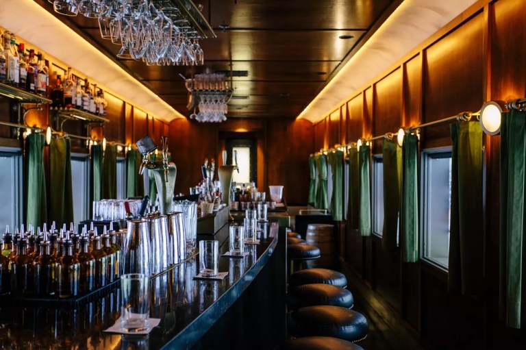 Modeled after a Presidential Pullman train car, Platform 18 at Century Grand transports you to the glamorous world of the early 20th century. The wood-paneled walls and digital window screens that display stunning natural landscapes make it easy to forget you never actually left Phoenix. Named one of North America’s 50 best bars in 2023, Platform 18 offers a menu that showcases twists on classic Prohibition-era drinks and original cocktails inspired by New York in the Roaring 20s. Begin your journey with a glass of champagne; then try the Film Star. This take on a Vesper is made with olive oil-washed gin, vodka and lemon-infused Lillet. It’s served with orange and thyme caramel corn. Much like with a real train, you’ll want to book a ticket (aka a reservation) in advance.