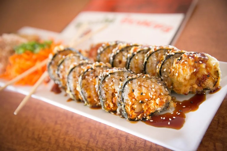 Sushi Sonora claims to be the first Mex-sushi restaurant in metro Phoenix, and it continues to be one of the most popular spots to indulge in cheesy, deep-fried rolls. Specialties here include the Dinamita (“dynamite”) roll, a tempura-battered and deep-fried roll stuffed with cooked shrimp, cream cheese, and avocado. But everything else will seem like health food in comparison to another house specialty, the Percheron roll (named after the much-loved, oversize draft horse). The roll, which looks like a burrito and comes wrapped in tinfoil, is stuffed with carne asada, pollo, bacon, avocado, the whole thing glued together with massive amounts of yellow cheese.