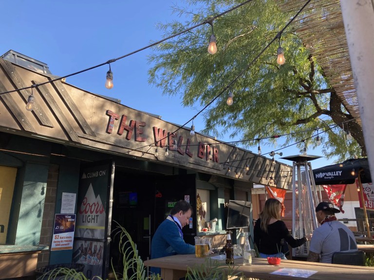 This well-loved south Scottsdale dive carries none of the pretension of the cocktail parlors and clubs occupying the same stretch of road further north. The music is loud; happy hour participants will have to shout over whatever live Phish jam is playing to argue about their sports. There’s also a sunny, spacious, dog-friendly patio, which is right against roaring Scottsdale Road. The actual traffic doesn’t stop the foot traffic, though. Regulars frequently walk up to snag a stool inside. How do we know they’re regulars? Each is greeted by name by a chorus of beered-up patrons already a few drinks in. Points in The Well Bar’s favor include a centrally located pool table, janky his-and-her bathrooms, multiple flatscreens, and a no-nonsense bartendress.