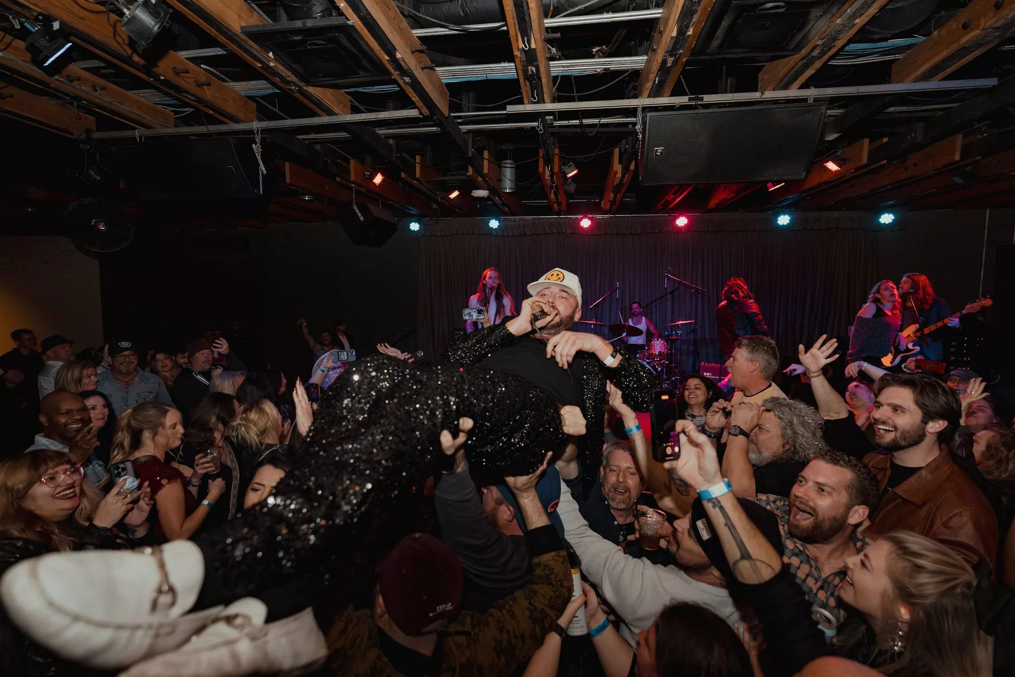 Wyves frontman Corey Gloden gets carried away by the crowd at the end of the set.