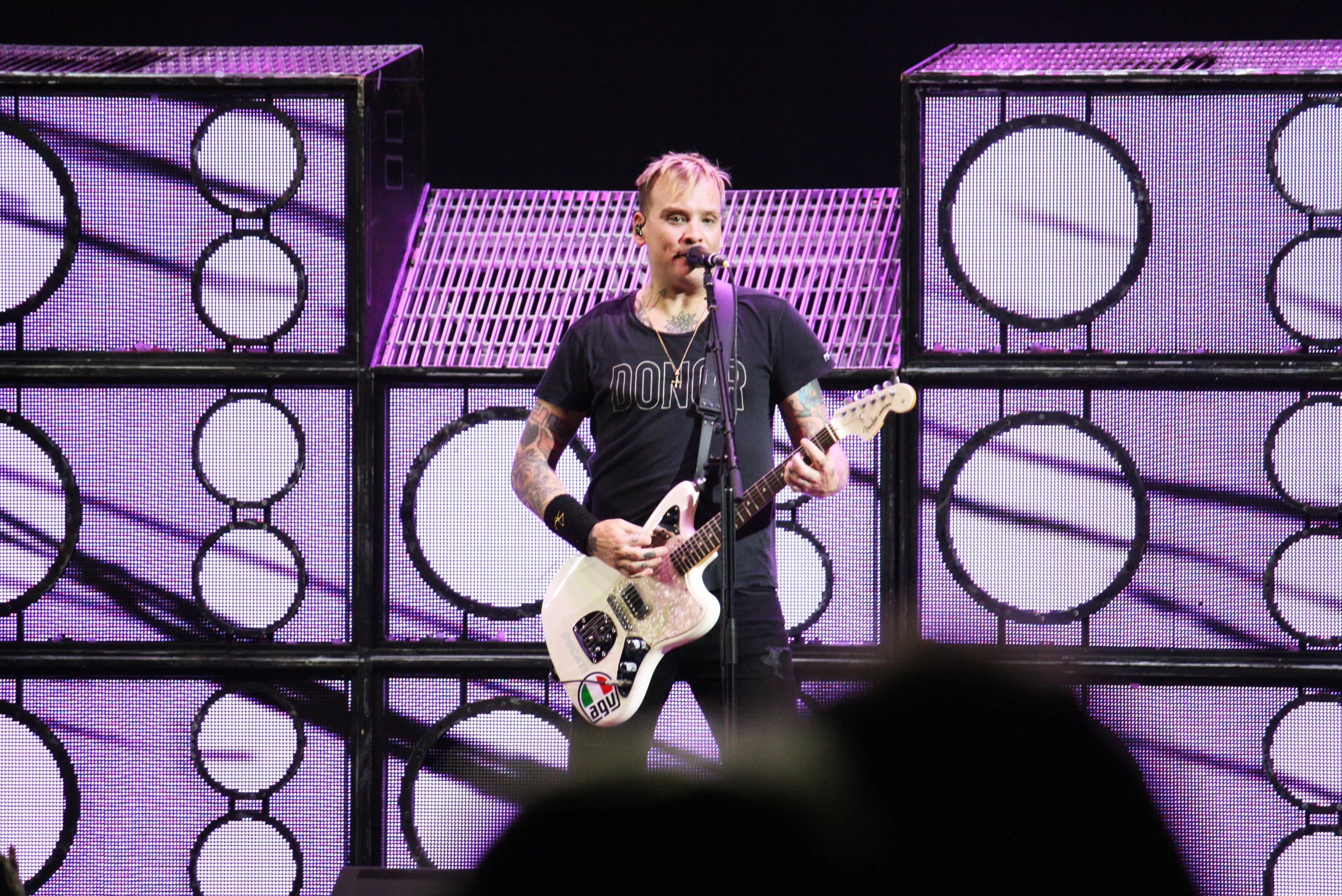 There were aliens at Ak-Chin Pavilion last night – little inflatable green men flying over the heads of the crowd. Someone to the right of blink-182’s stage hurled the space invaders into the crowd as the band started playing “Aliens Exist.” Whether or not this Invasion of the Blow-Up Dolls was meant as a sly dig on their former bandmate/UFO-ologist Tom DeLonge is hard to say, but it couldn’t help but draw attention to what was missing.