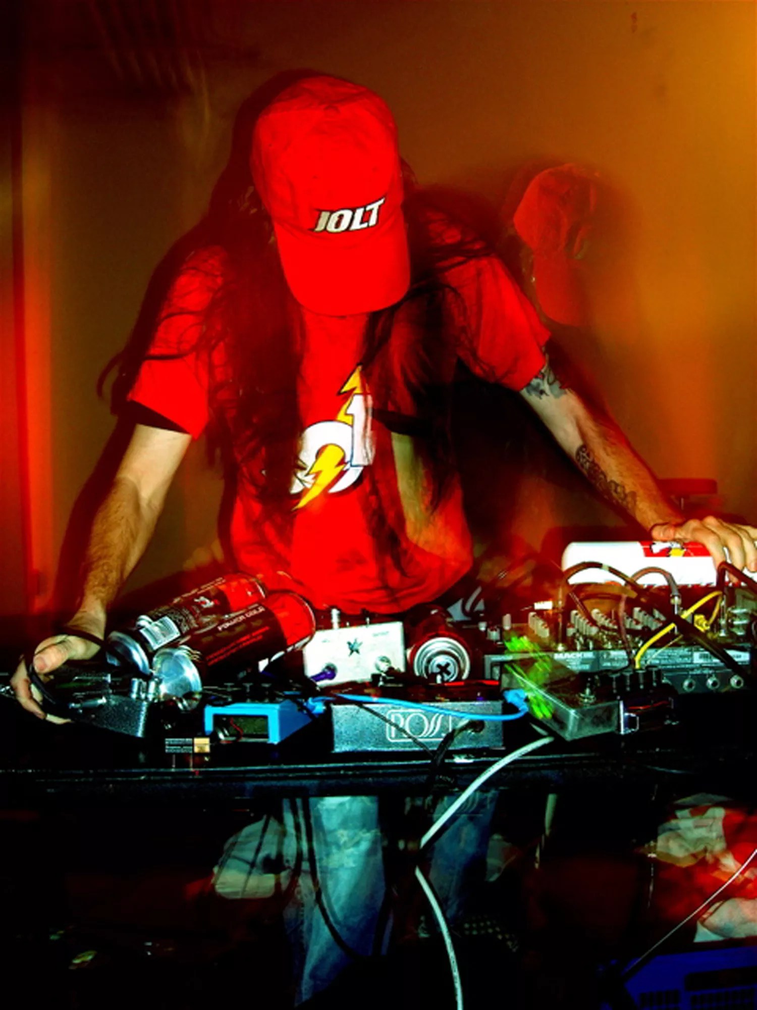 “Jolthrower evolved after decades of consumption of Jolt Cola, the world’s most powerful cola. Some say that Jolt Cola fueled the creation of the internet itself in the 1980s, among other things that geeks and nerds do when up all day and all night on caffeine. But for sure, in the early part of the 21st century, Jolt Cola gave birth to this distorted audiologist,” Lob Instagon, promoter of the upcoming Jolthrower performance, says, explaining the performer’s lore.