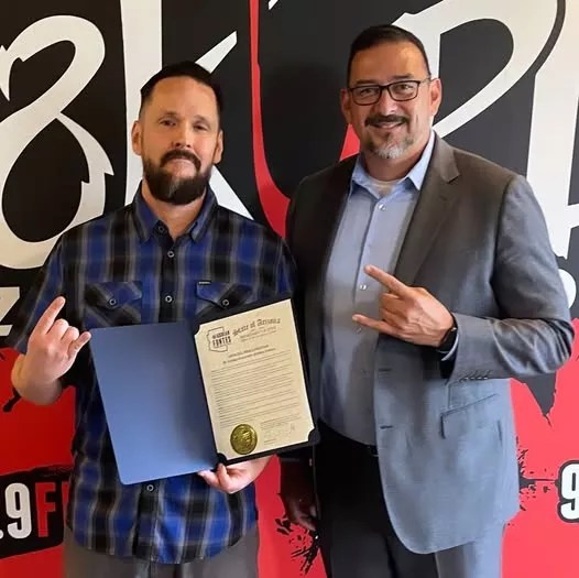 Local radio veteran Fitz Madrid, who is currently in his 20th year as afternoon host at KUPD, looks pretty emo in the picture with Fontes after the official document was signed. He posted, “I legitimately was a bit verklempt during the signing of the proclamation declaring today Ozzy Day.”