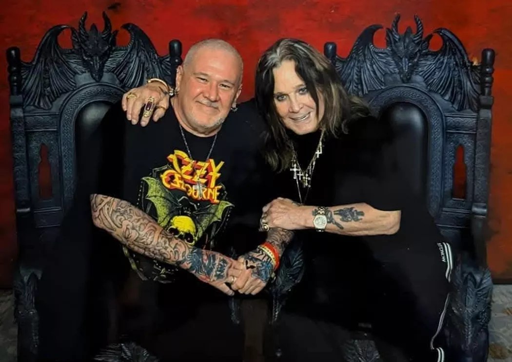 Asylum Records owner Scott Robenalt, left, with Ozzy in 2024.