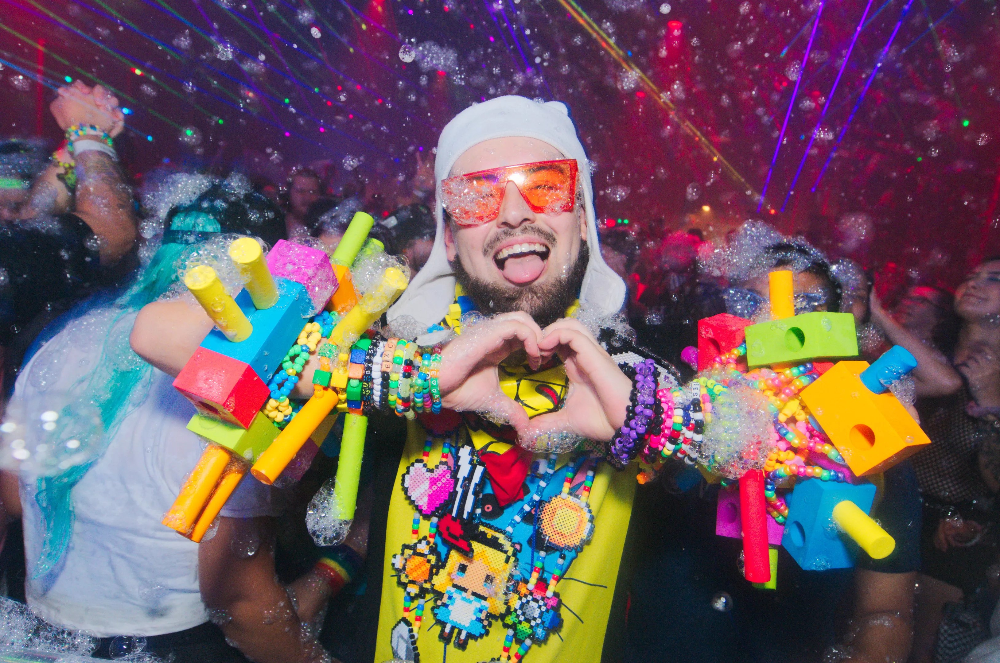 An EDM fan at one of the Bubble Bobble foam parties at Club Red.