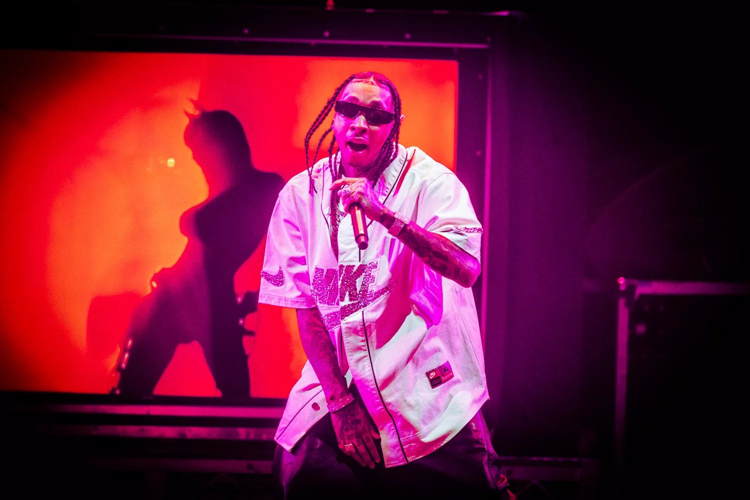 Tyga kicked off the night with a crowd-pleasing, cover-heavy set. The Compton-born rapper hyped up the audience with his hits “Rack City” and “Taste,” plus other bangers such as “Ayy Ladies” by Travis Porter and “Loyal” by Chris Brown.