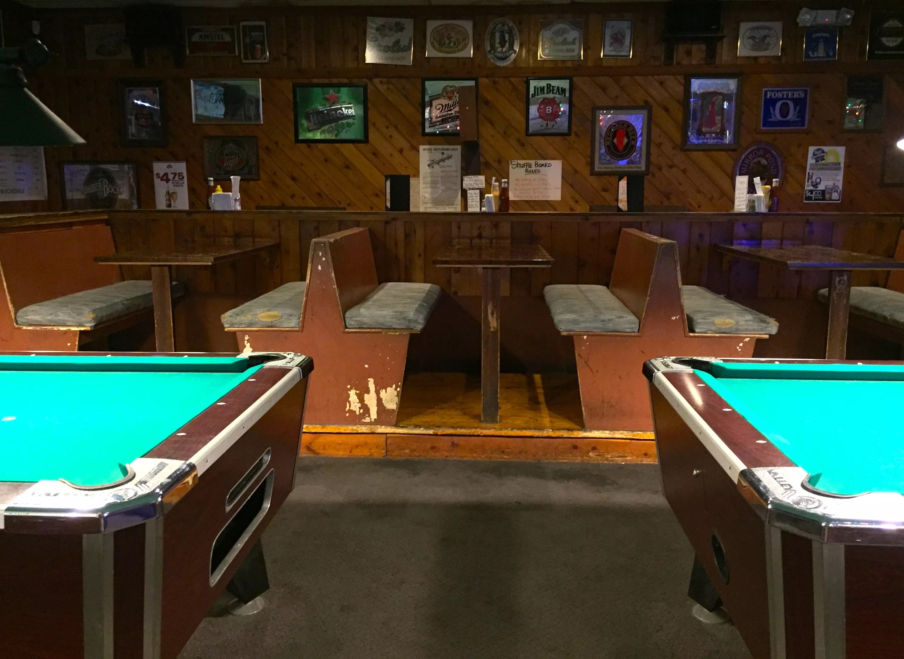 Since it opened in 1992, Neighbors hasn’t gone through a lot of major changes. Found in a tidy strip mall, Neighbors features pool tables, dart machines, card tables, TVs, and an internet jukebox playing mostly ’80s and country music. The wooden walls are covered in neon, and the 360-degree bar to the left of the entrance surrounds one of those iconic rounded Budweiser Clydesdale lamps. Best thing about this place: A late patron illustrated the happy crowd window art outside, and some of the cartoon people were actual regulars at the time.