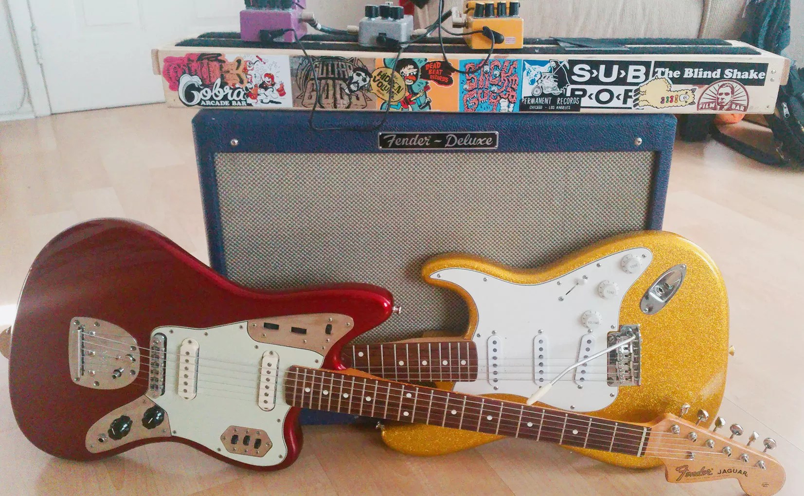 The pedal board my pal made for me from IKEA parts. I can’t wait to find cool pedals to put on it. Just wish it had more room for more stickers to vomit all over it!